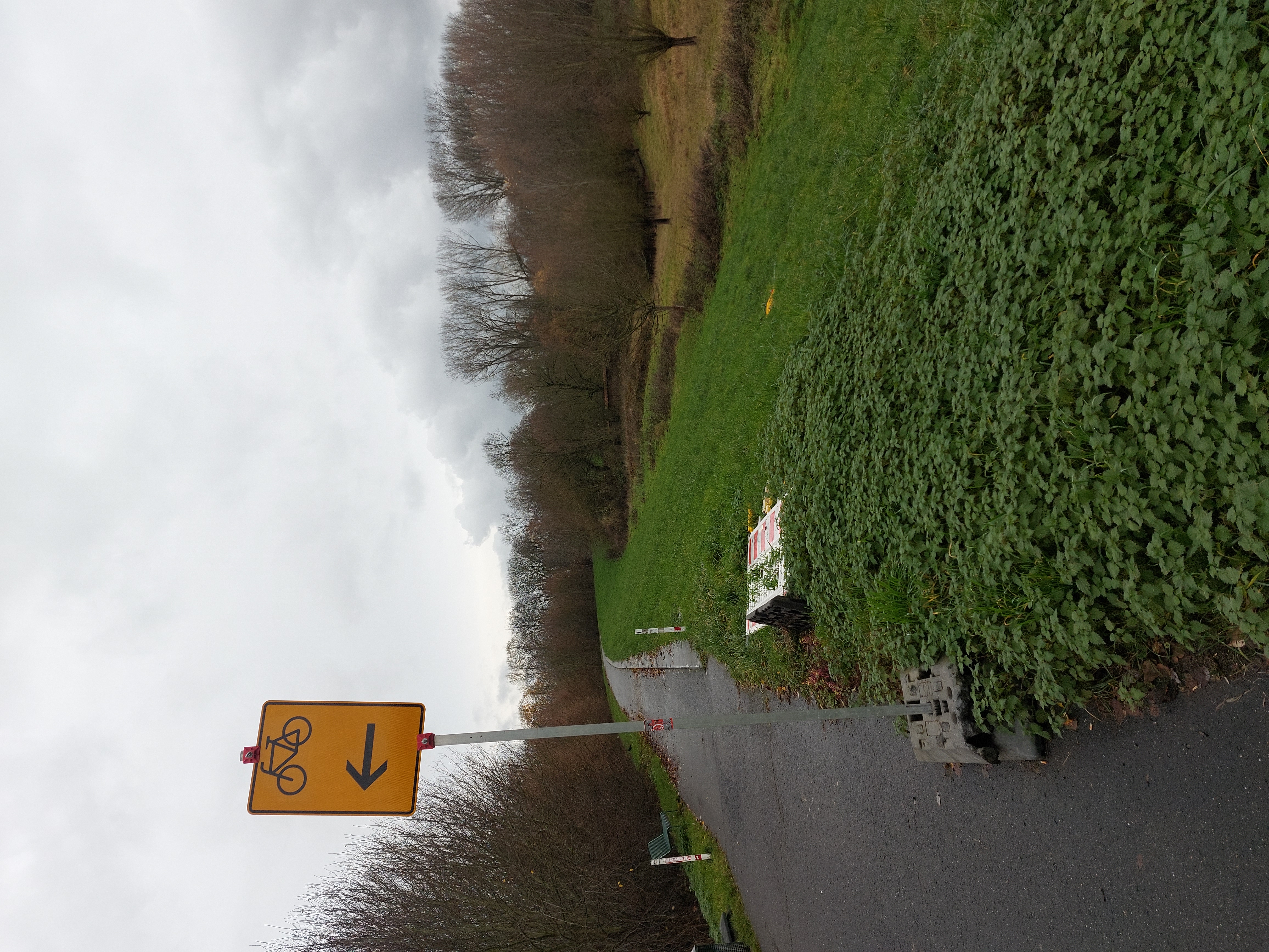 Umleitungsschild und Absperrung umgeworfen bzw. den Deichhang herabgeqorfen