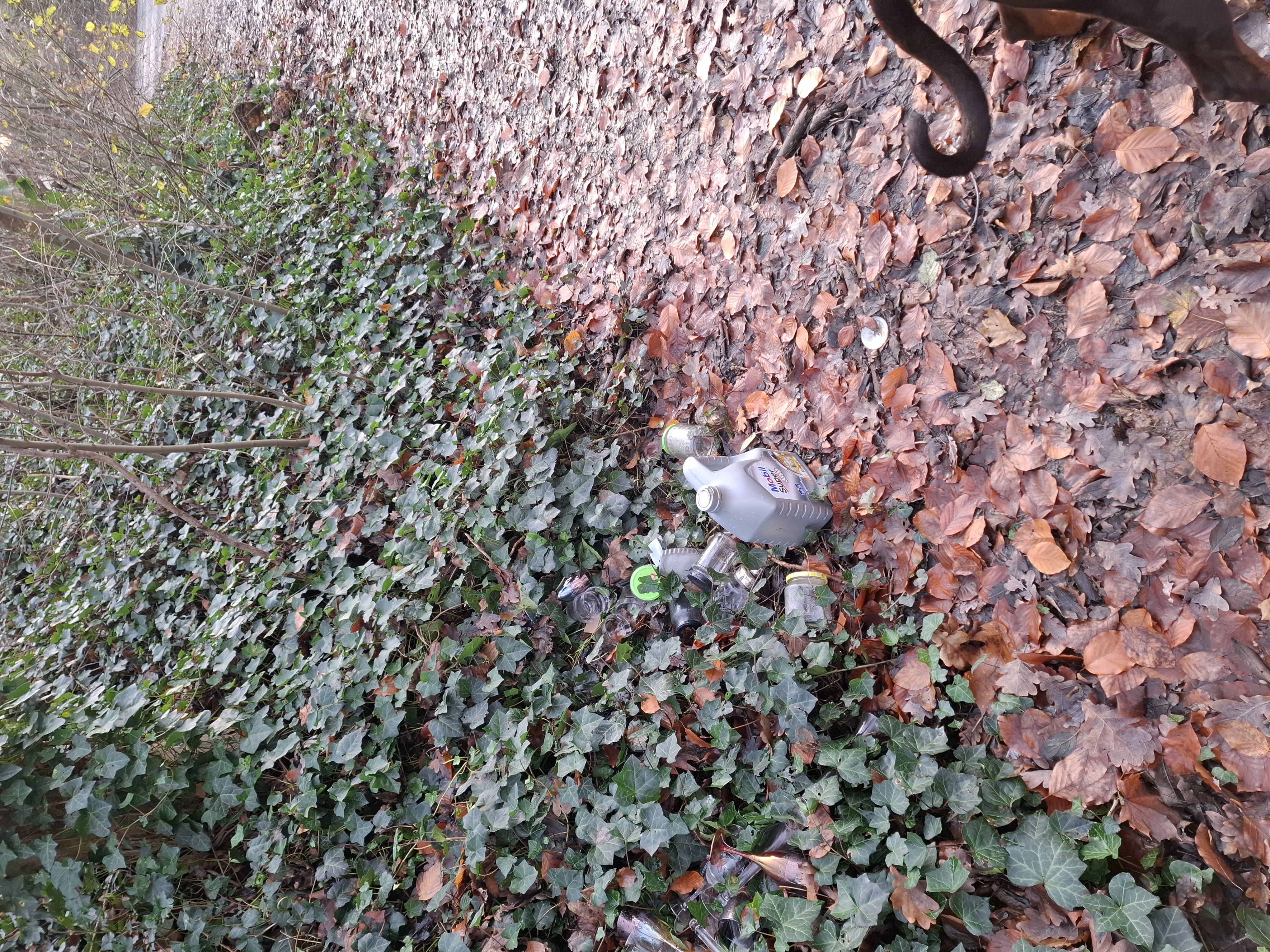 Hier wurde Motorenöl und diverse Gläser abgestellt.