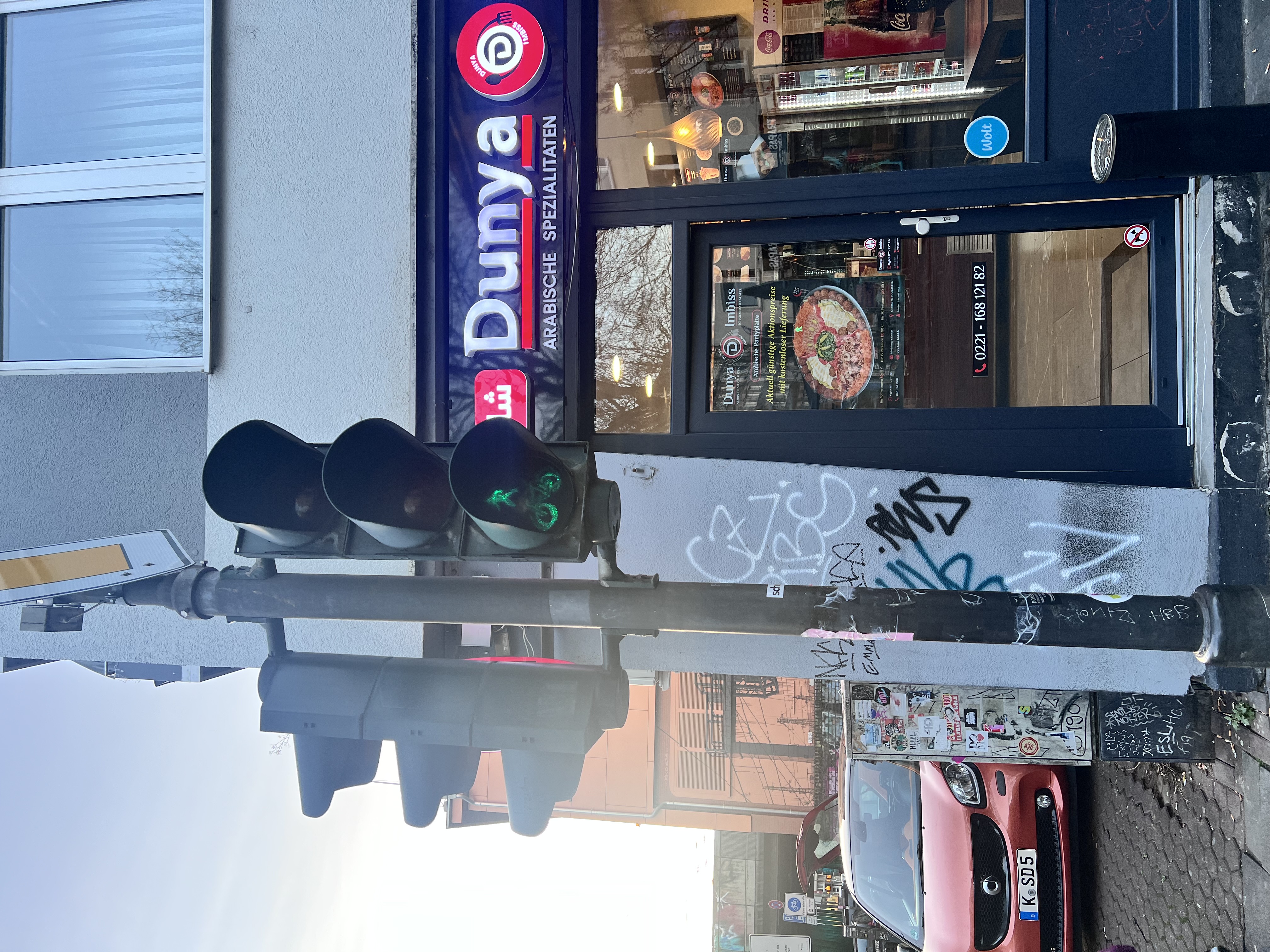 Grünanzeige für Fußgänger*innen wurde schwarz angesprüht und ist kaum zu erkennen.