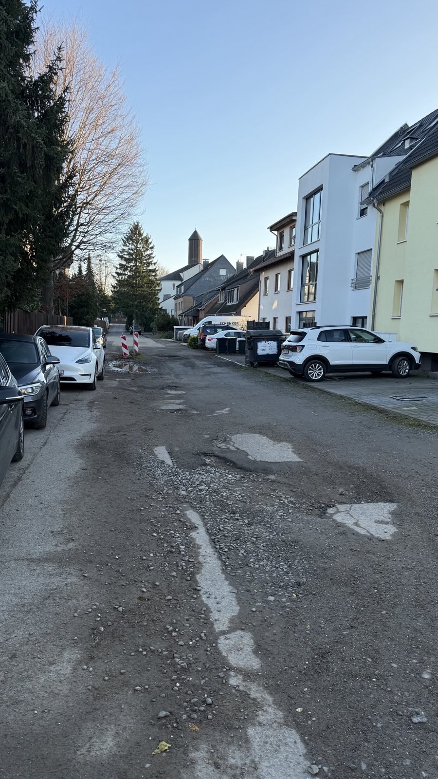 Seit mehreren Jahren wurde dieser Teil des Jungbornwegs (Ecke Quickbornweg) durch Baustellen der Häuser 12 u. 6 belastet. Nun bietet sich aber folgendes Bild. Die Hauseigentümer der Häuser Jungbornweg 12 und 6 belassen den Bereich vor ihren Häusern als Feldweg, die Bewohner parken aber auf der ursprünglichen Strasse, so dass wir Anwohner durch die tiefen Schlaglöcher fahren müssen. Auch steht mitten auf der Strasse ein Schild der Rhein Energie.