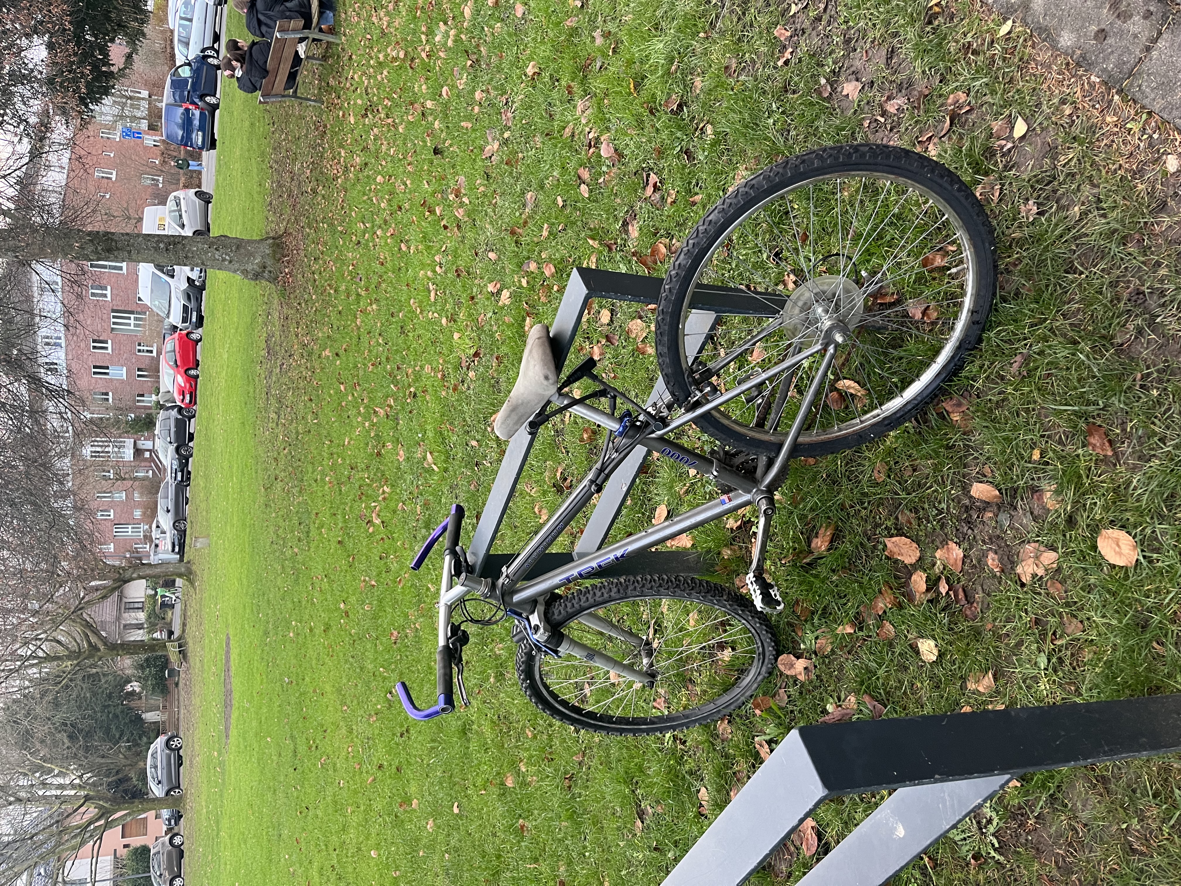 Das Fahrrad steht seit einiger Zeit an dem Fahrrad Ständer an der dortigen Kirche.