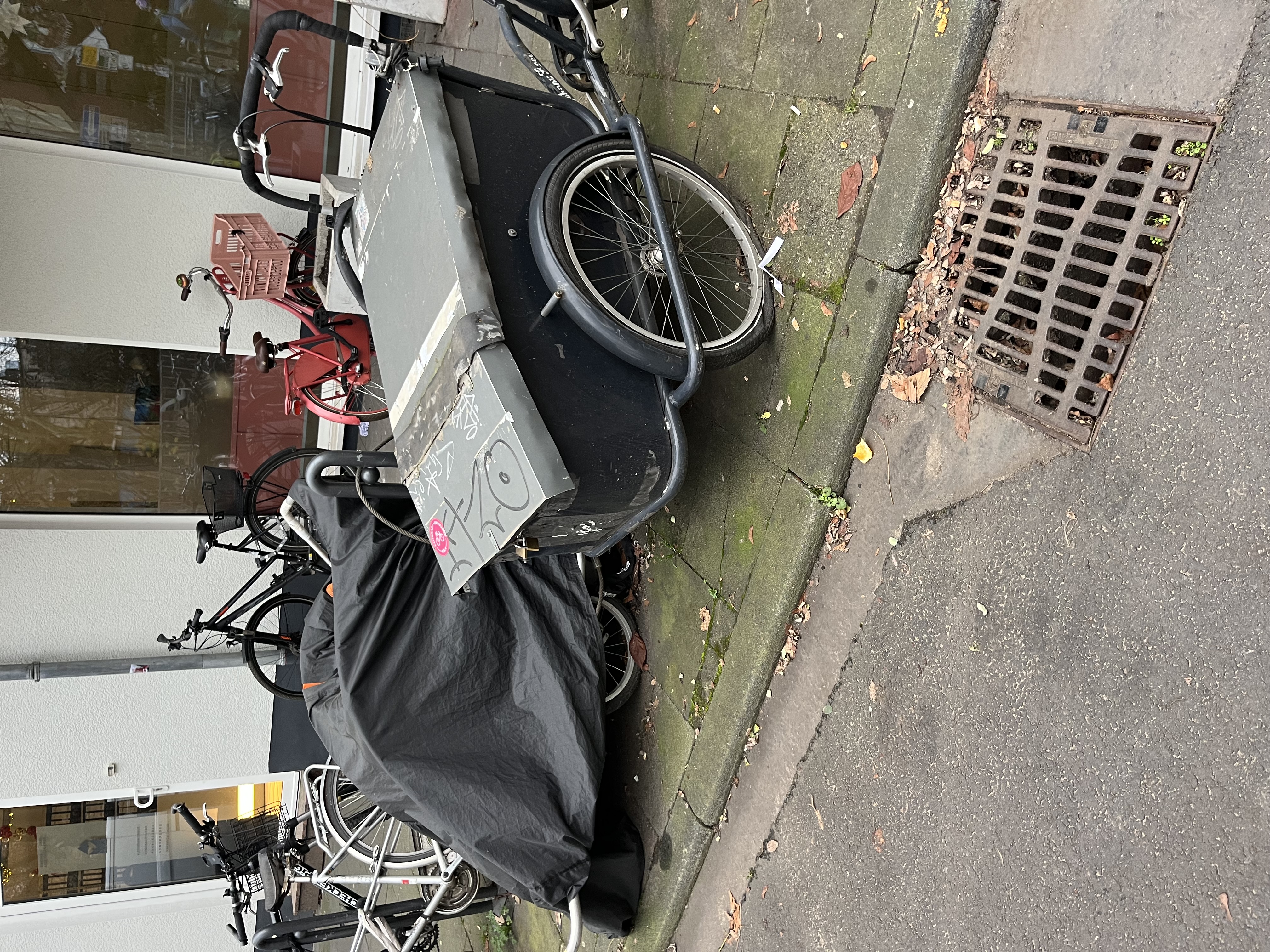 Lastenrad und Anhänger stehen platt seit mehr als einem jahr ander seite auch Anhänger