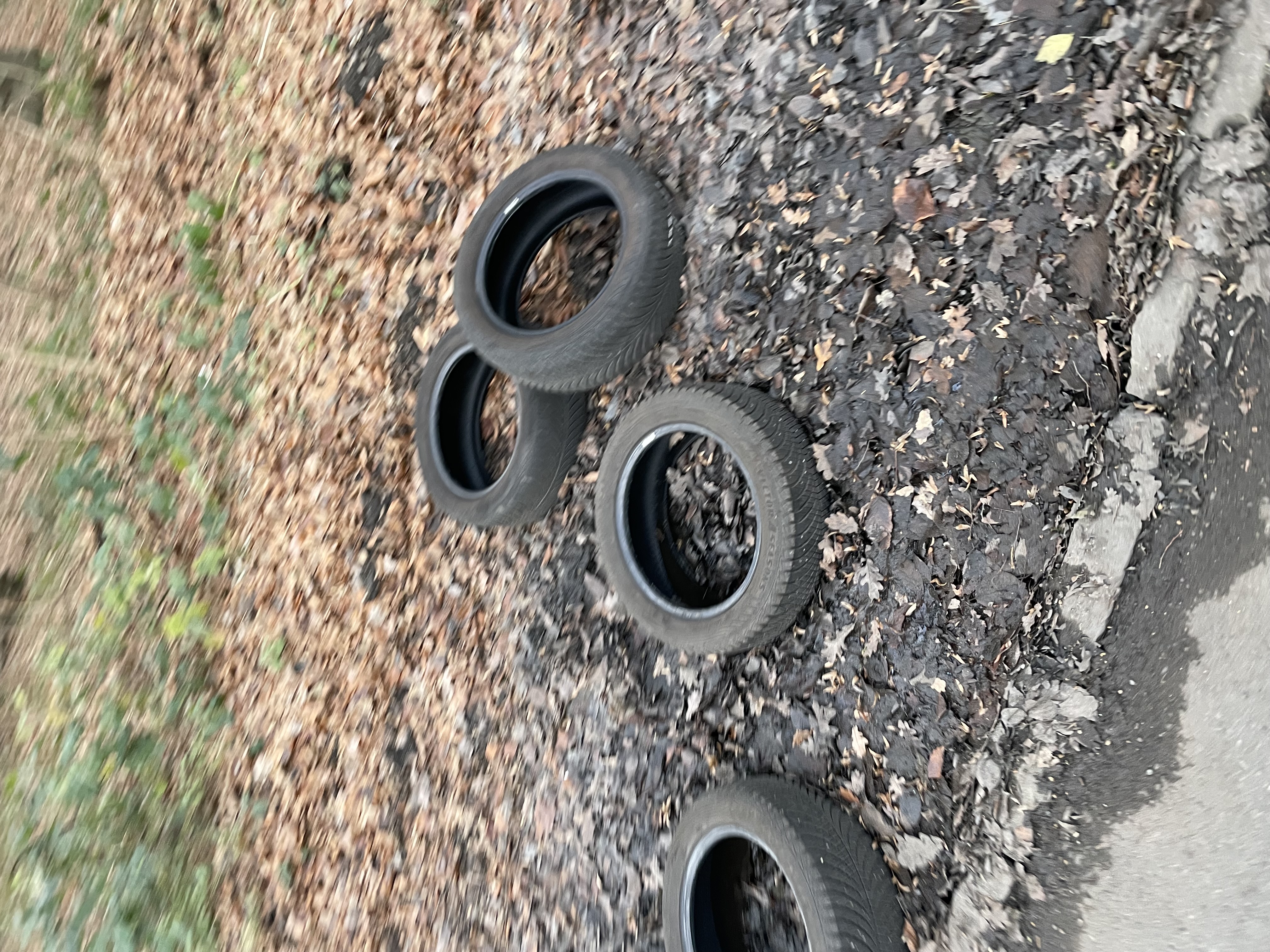 Seit Wochen liegen hier alte Reifen am Straßenrand im Gebüsch bzw. auf der Straße.