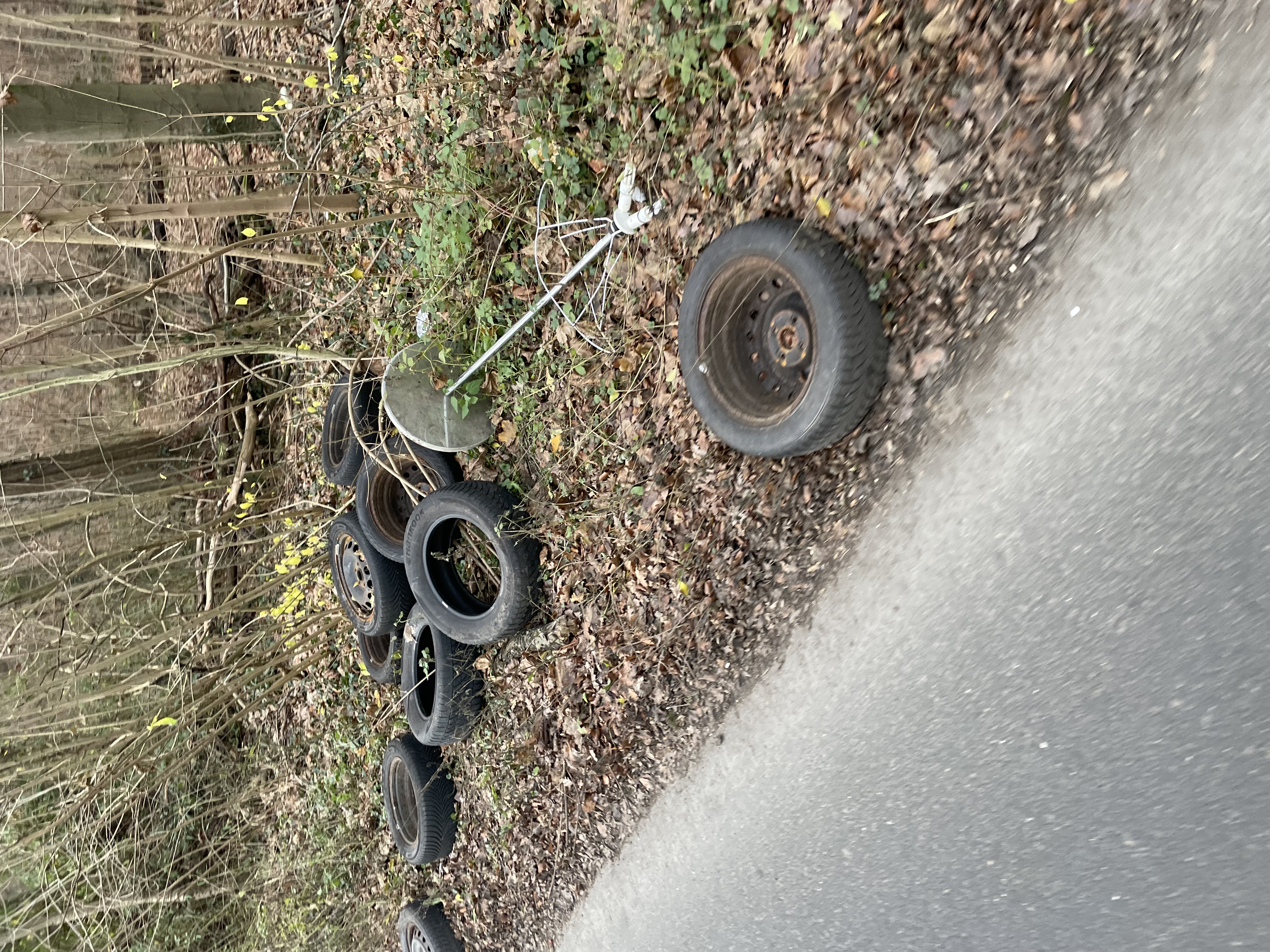 Alte Reifen am Straßenrand im Gebüsch. Seit Wochen.