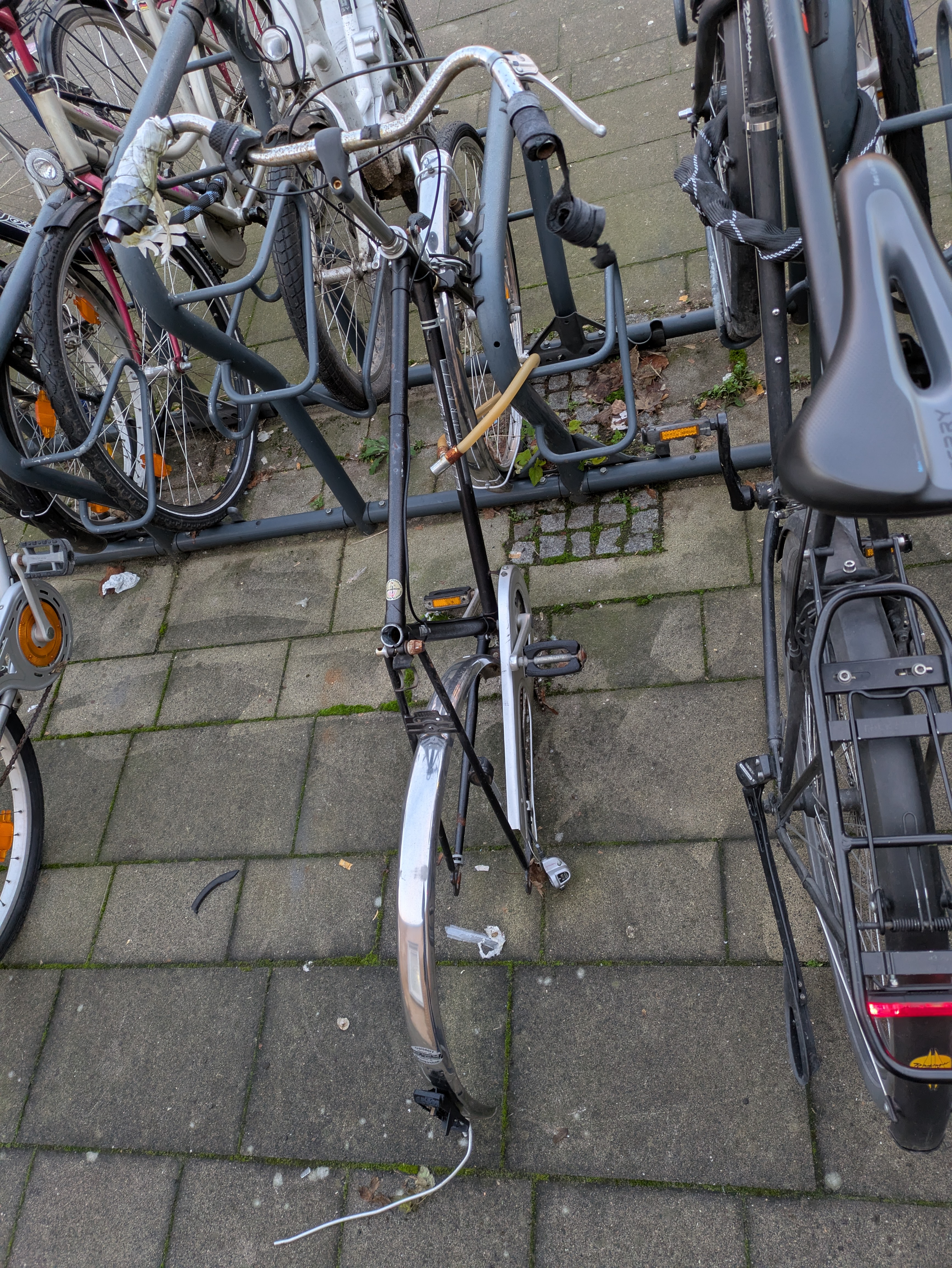 Kein Sattel, kein Hinterrad, Griffe zerfetzt. Steht am großen Fahrrad Ständer vorm Bahnhof Mülheim, in der Reihe zum Gebäude hin. In Bearbeitung Schrottfahrräder Montanusstr. 2 51065 Köln Deutschland Statusvermerke Das Anliegen wurde erstellt. Neu Do., 18.12.2025 - 08:35