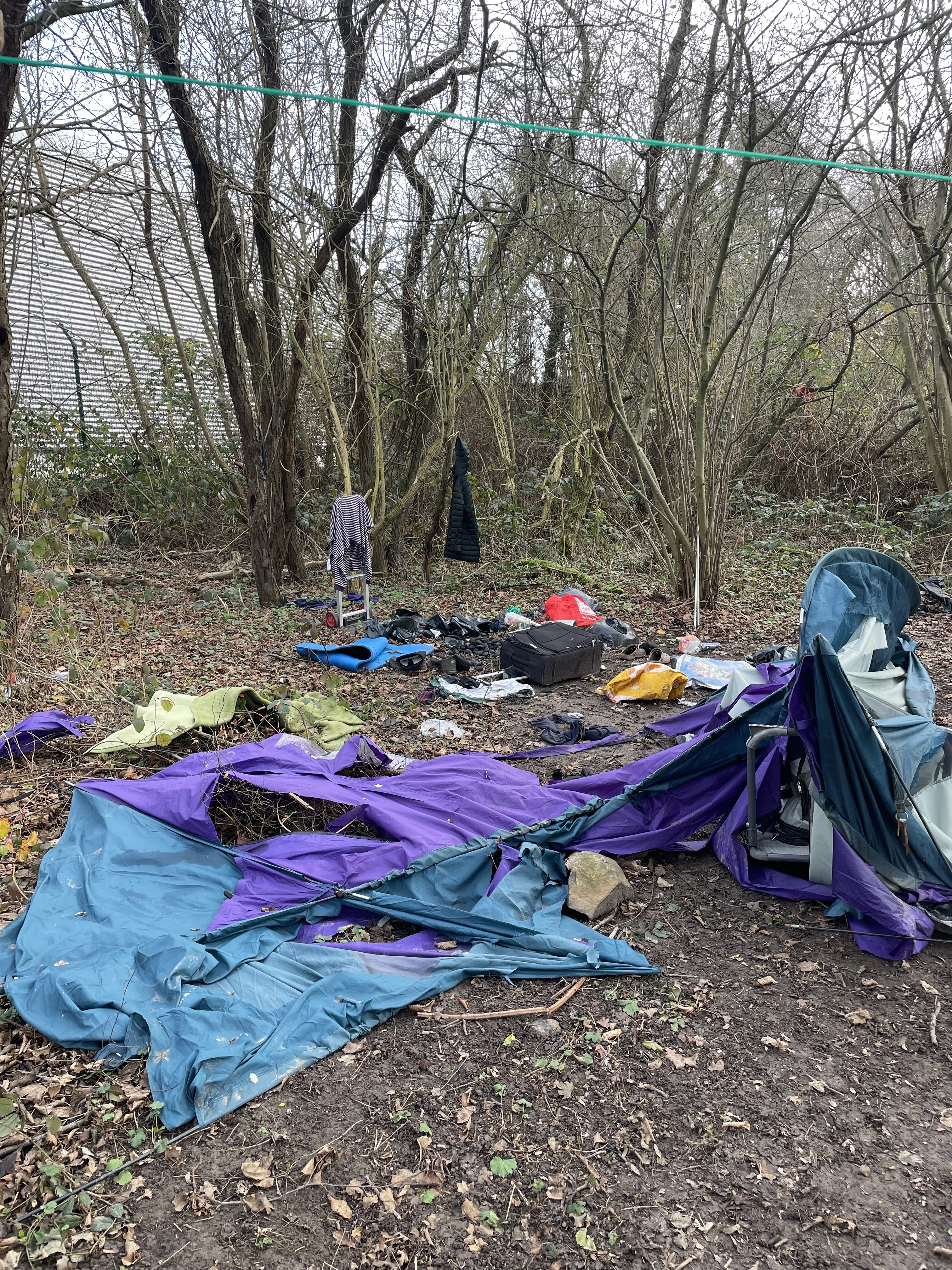 Hier haben wohl Obdachlose gehaußt und alles zurückgelassen. Es gibt einen kleinen Weg um das Feld herum. Diesen gehen viele Hundebesitzer mit ihren Hunden. In der Nähe des KVB Werks befindet sich der Müll.