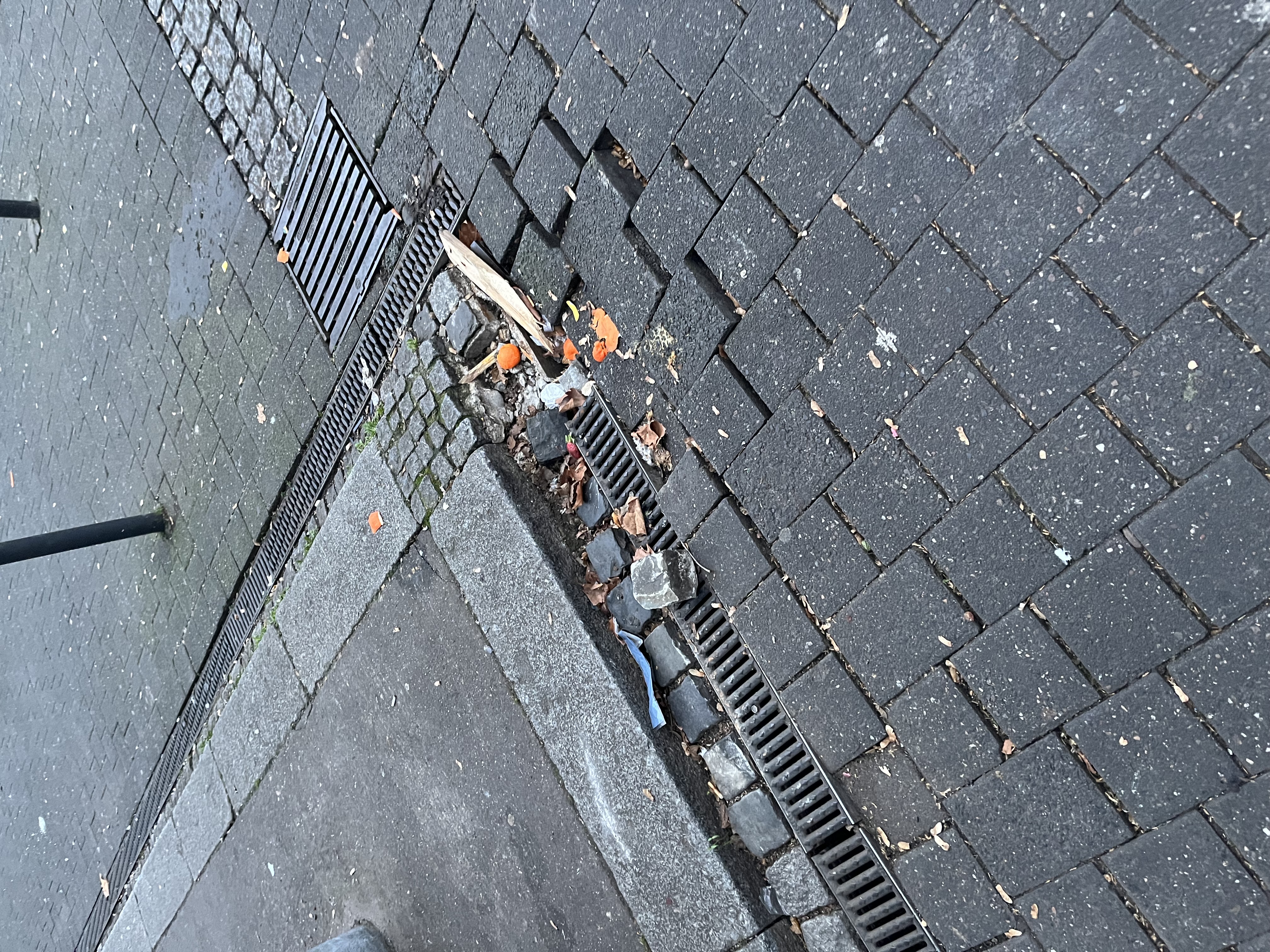 Direkt an der Ecke der Markthalle auf dem Marktplatz an der Berliner Straße / vor der Städt. Kita Berliner Straße Neu Defekte Oberfläche Berliner Str. 20 51063 Köln Deutschland Statusvermerke Das Anliegen wurde erstellt. Neu Do., 18.12.2025 - 16:48
