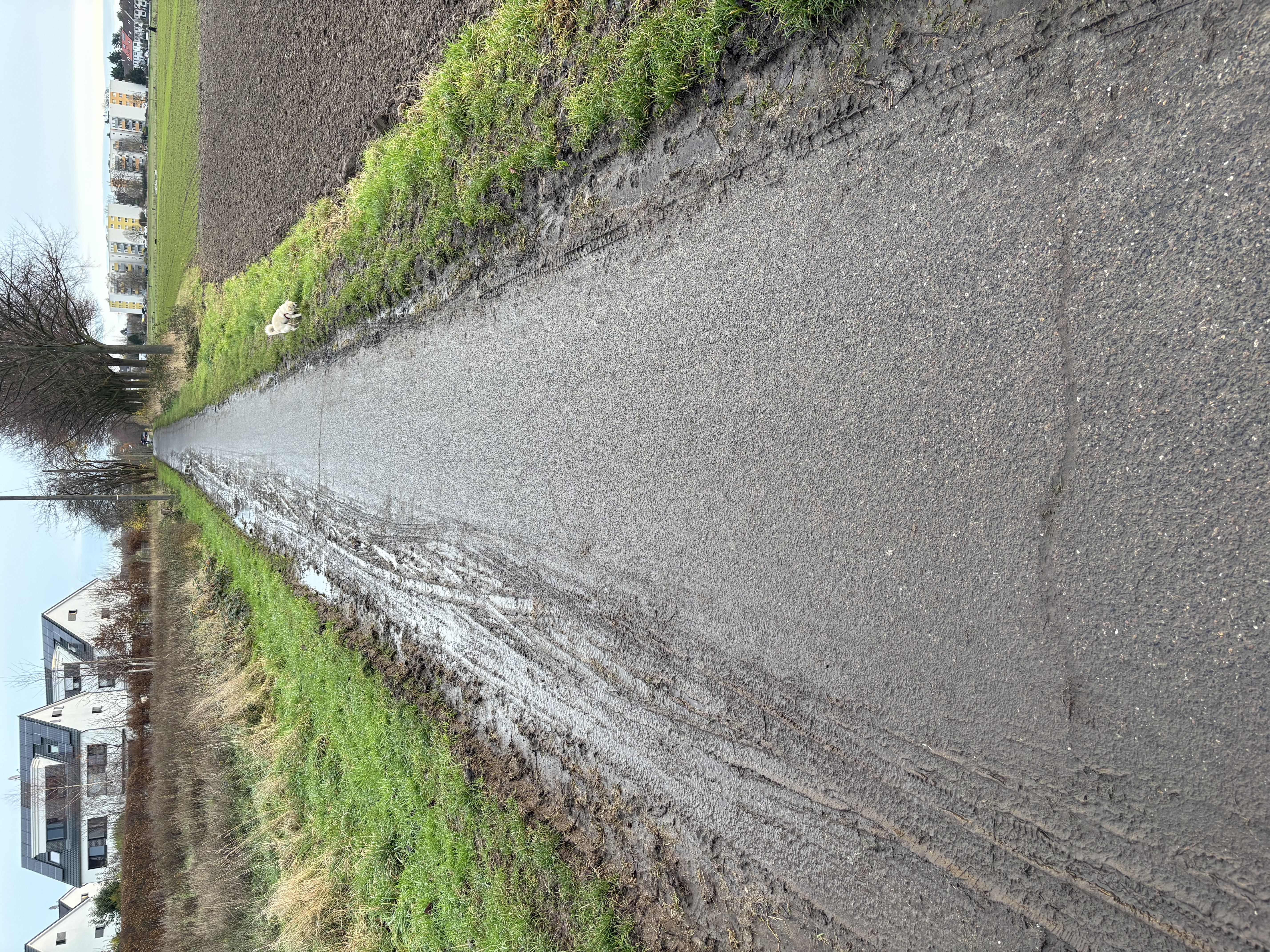 Radweg auf dem Sürther Feld verschmutzt: Seit ein paar Wochen schon ist der Weg stark verschmutzt und dadurch verengt. Morgens sind hier sehr viele Kinder und Erwachsene unterwegs zur Gesamtschule Rodenkirchen, OSK und Diakonie etc.