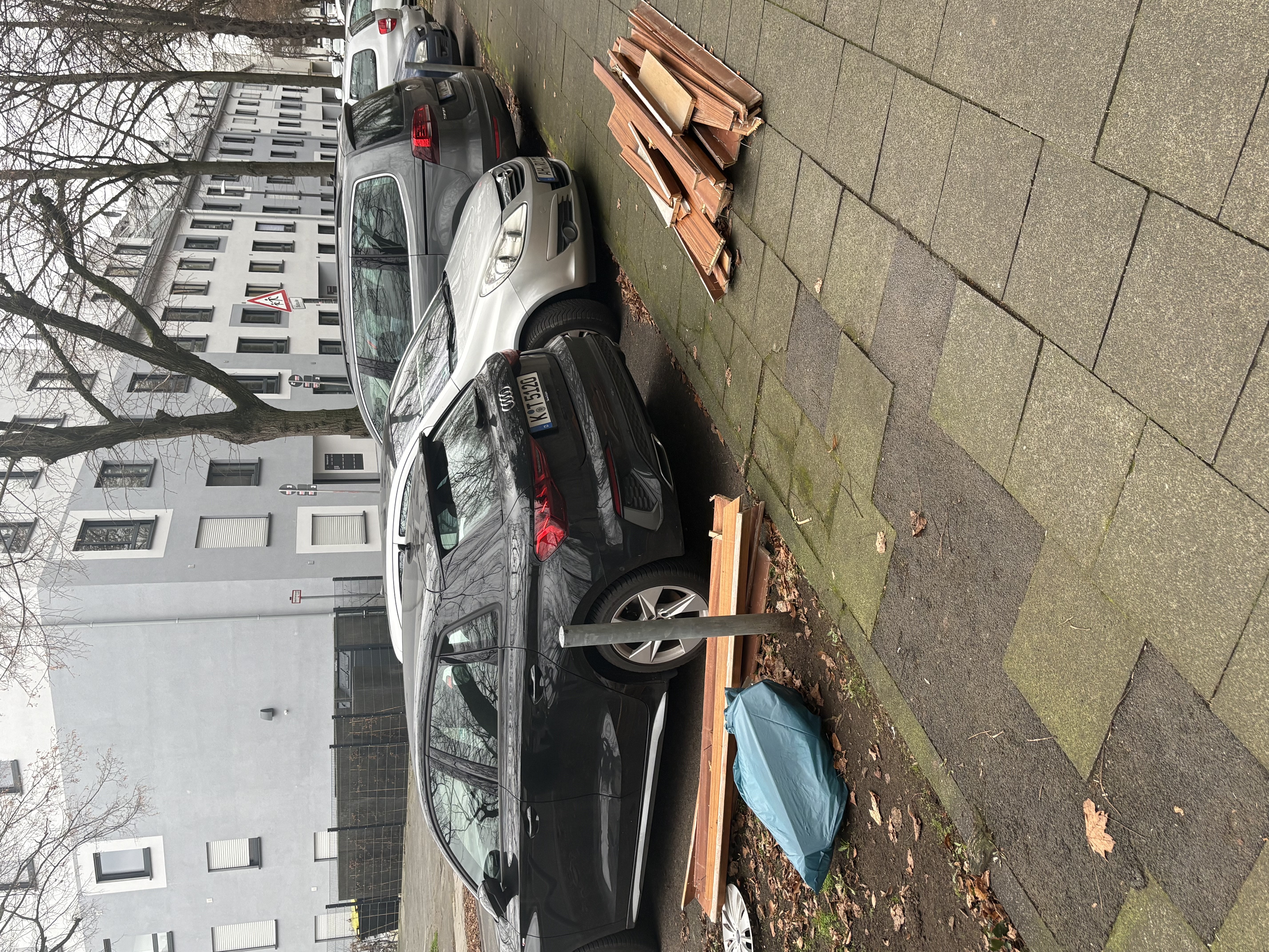 Auf dem Gehweg schräg gegenüber der Kleingartenanlage Nibelungen hat jemand Müll abgeladen. Der dort parkende PKW hat jedoch nichts damit zu tun und steht nur geparkt dort.