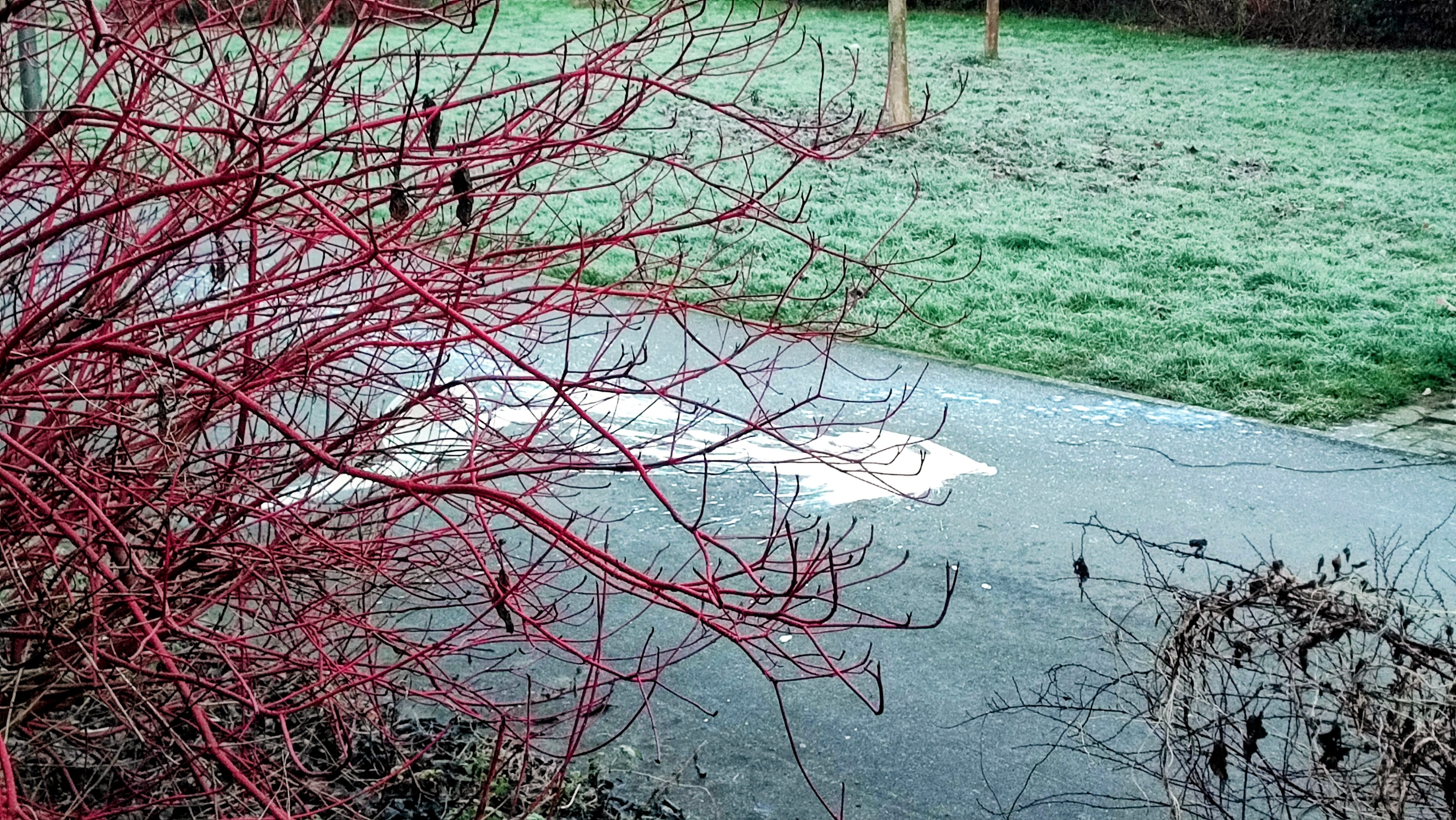 Heute Nacht haben Chaoten weiße Farbe auf den Geh- und Fahrradweg verteilt