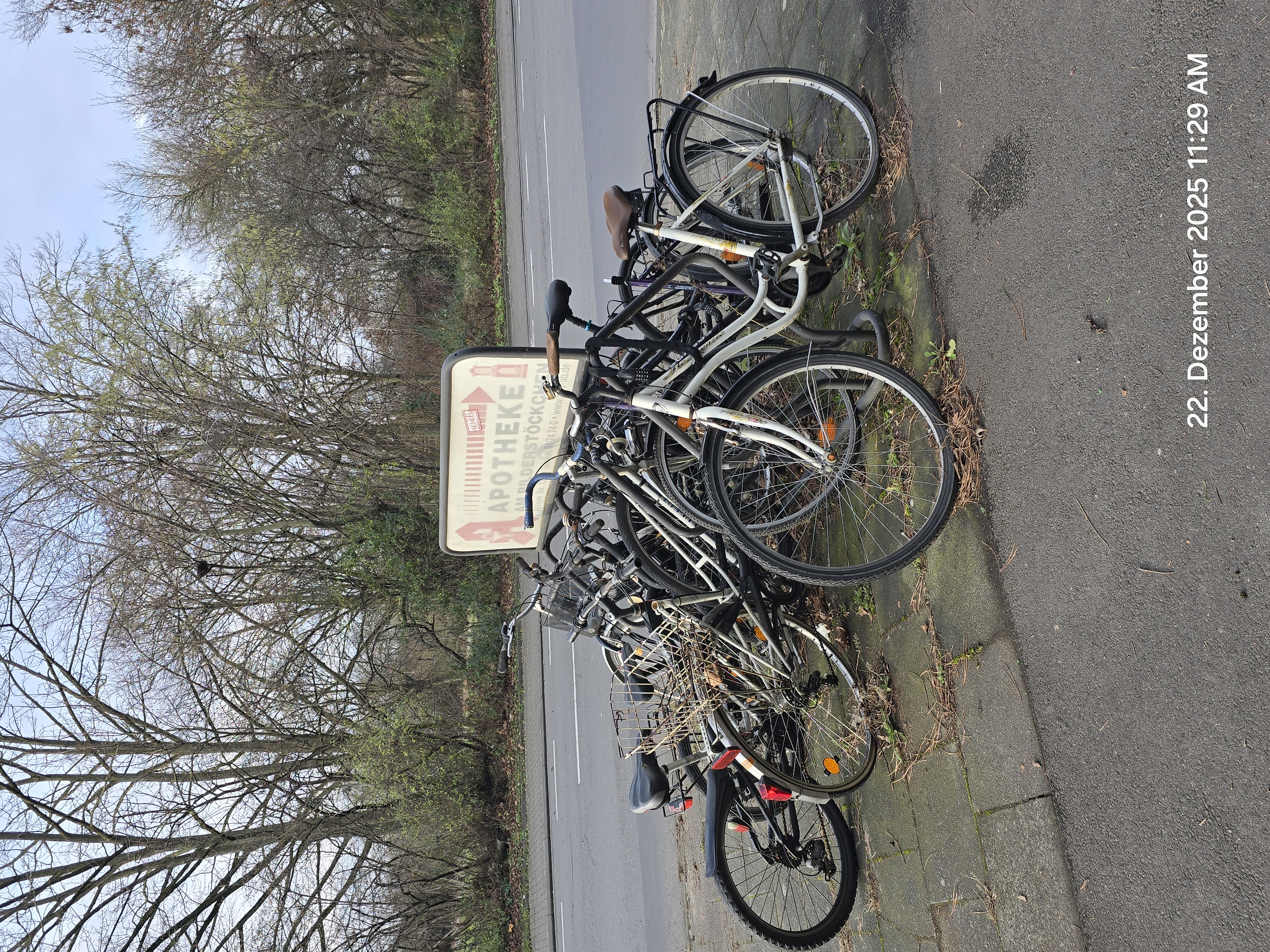 An diesem Fahrradständer sind mehrere fahruntüchtige Räder abgestellt. In Bearbeitung Schrottfahrräder Alzeyer Str. 2 50739 Köln Deutschland Statusvermerke Das Anliegen wurde erstellt. Neu Mo., 22.12.2025 - 12:43