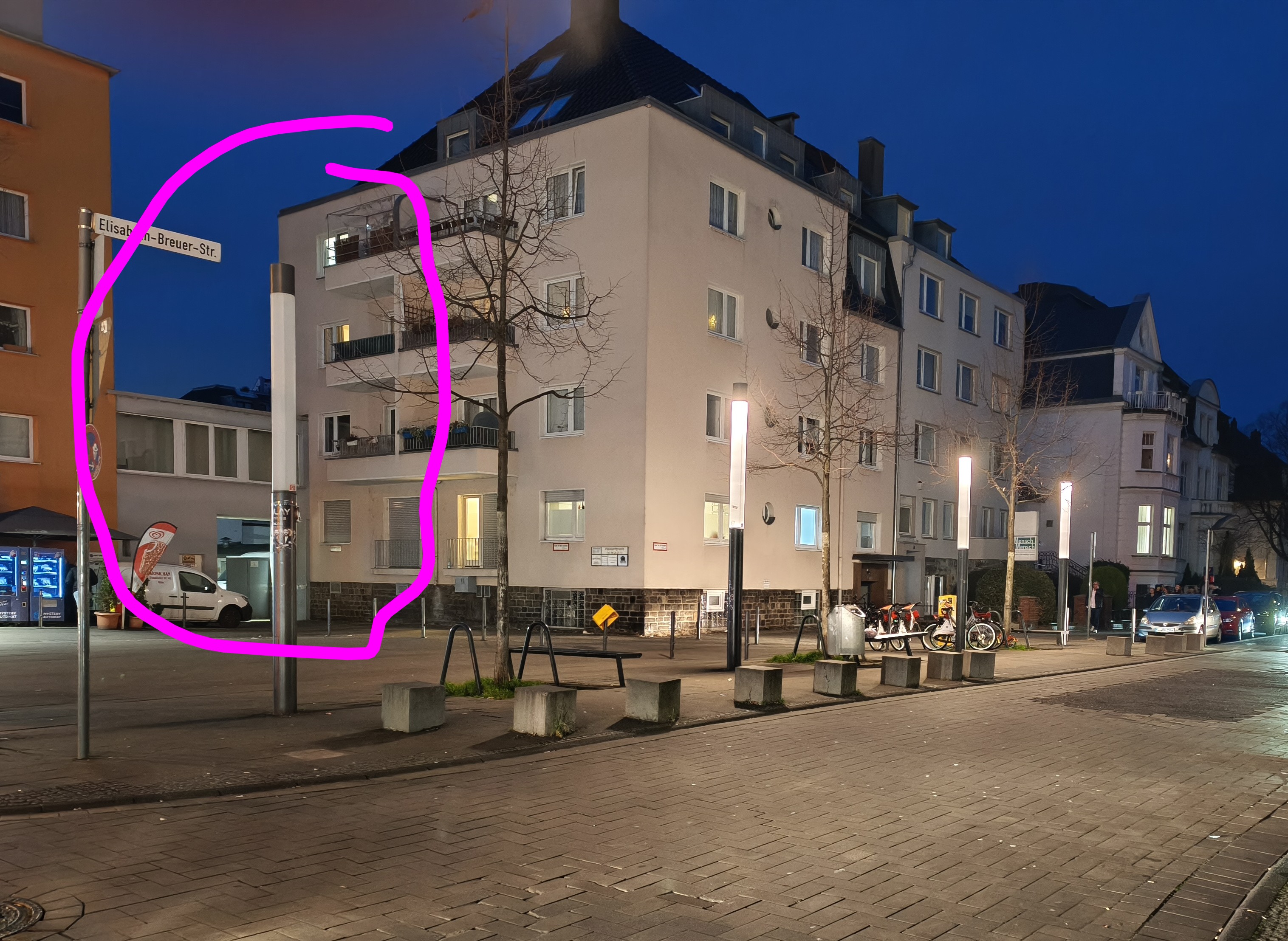 Die erste Lampe Frankfurter Str. Ecke Elisabeth Breuer Str brennt abends nicht
