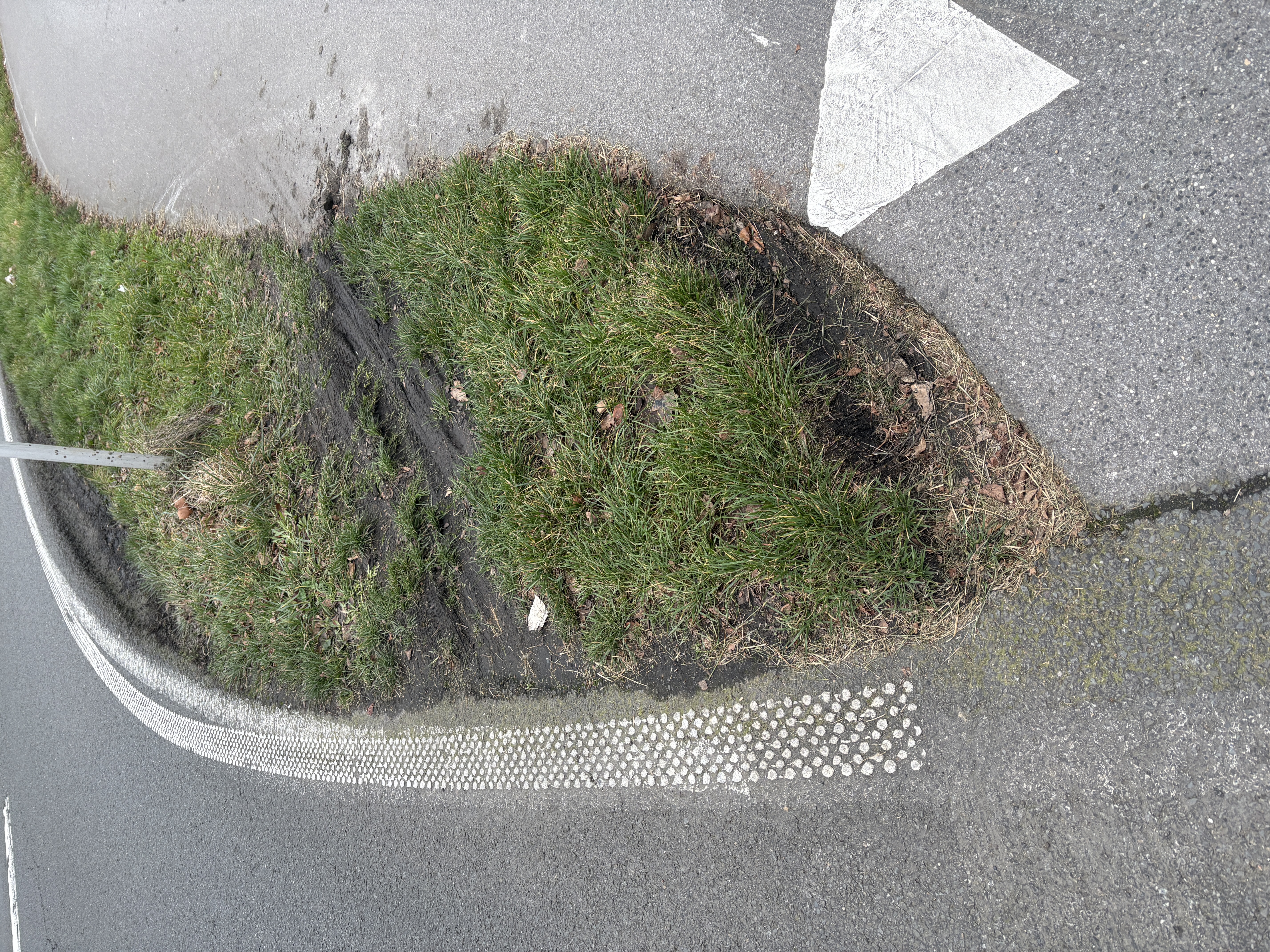 Dort ist am Fahrrad Weg dicht neben dem Asphalt eine 20 cm tiefe Rille die im dunkeln nicht sichtbar ist und schwere Stürze hervorrufen kann.