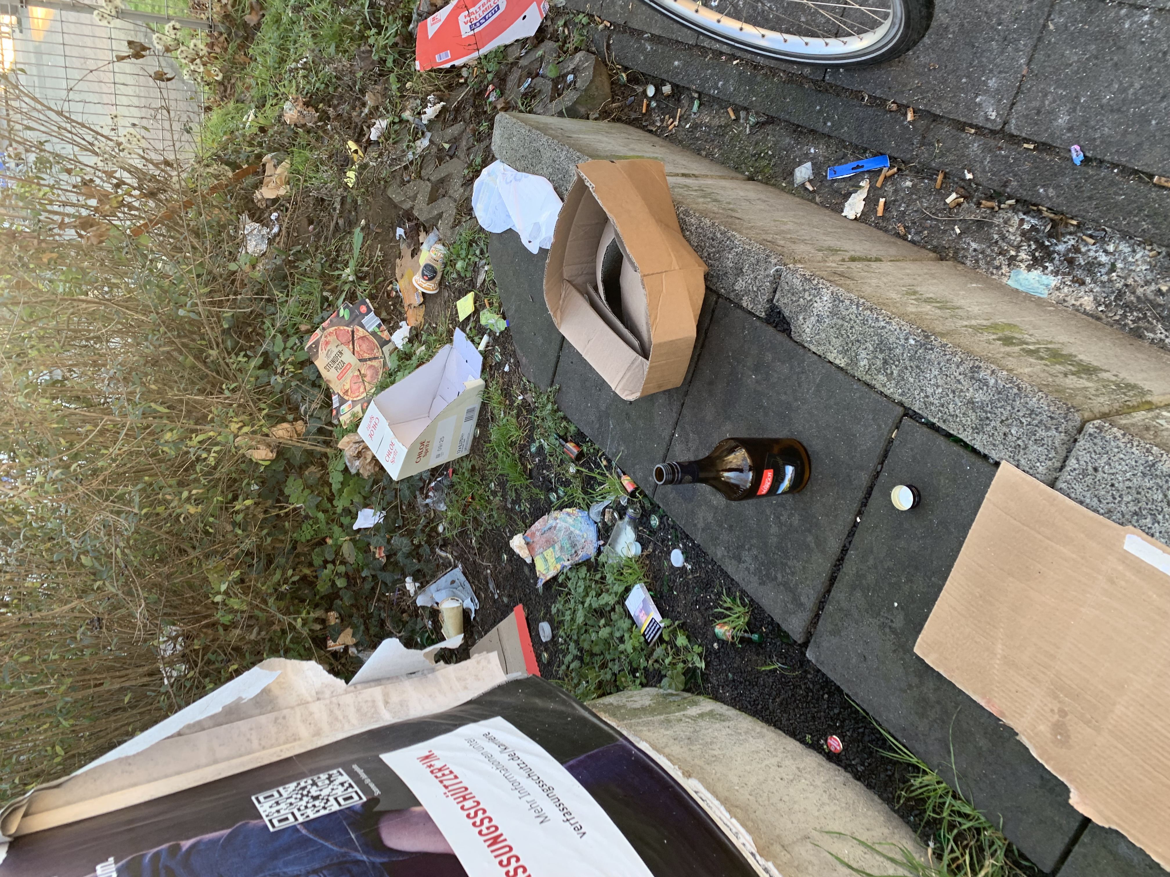 So sieht’s hier an der Litfaßsäule aus. Nicht nach Silvester sondern immer. Wer ist eigentlich seitens der AWB für die Sauberkeit im Mülheim zuständig? Überall Müll und Dreck. Der ganze Streumüll und der ganze wild abgestellte Sperrmüll. Eine Wiese oder Grünanlage ohne dreck gibt es quasi nicht mehr.