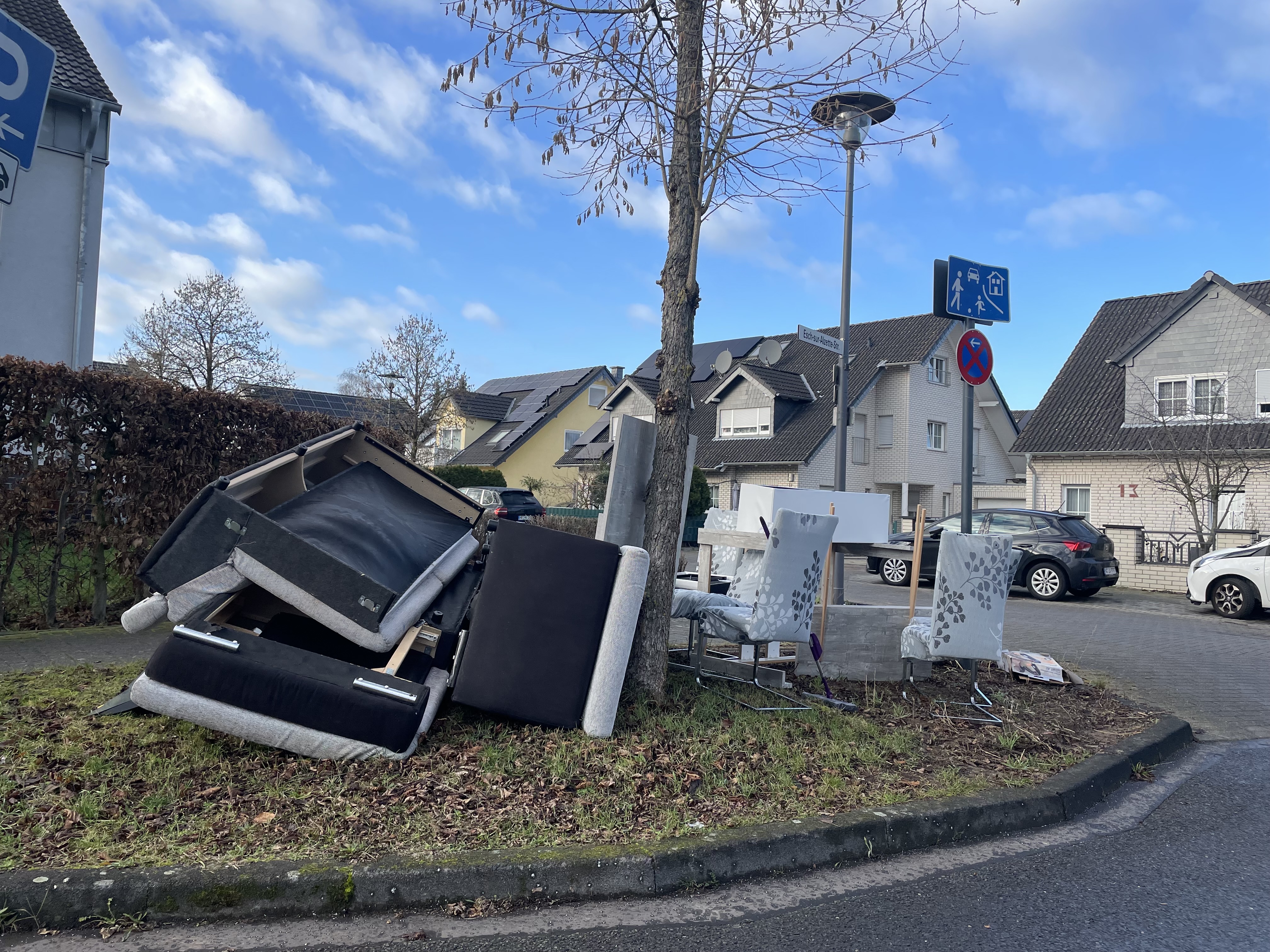 Hier wurde Sperrmüll hingestellt der kreuz und quer über der Straße lag. Nur durch vereinte Hilfe konnte der Sperrmüll nun auf die Insel getragen werden