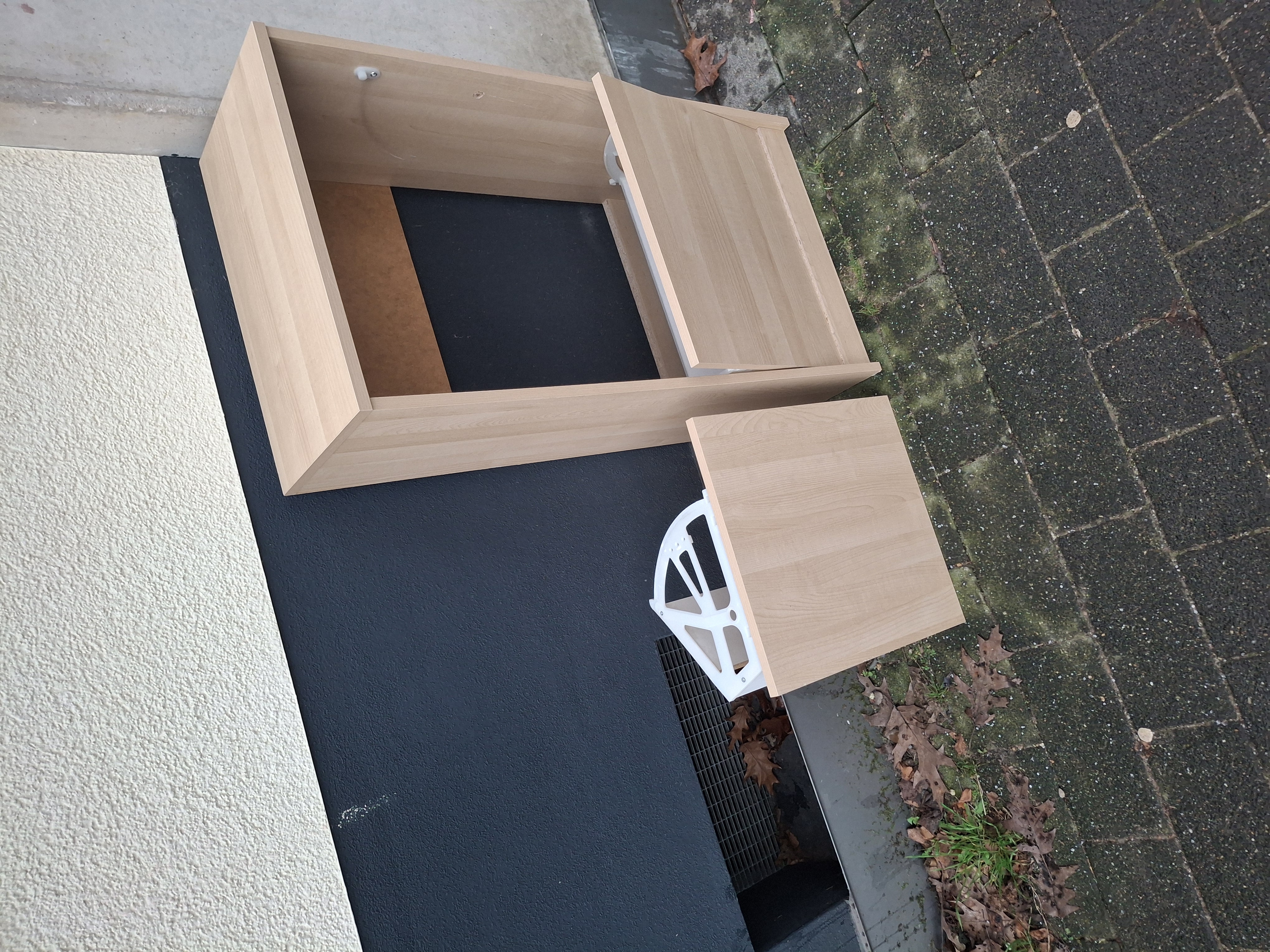 2 beige Kleinmöbel wurden vor der Kautschukstr. 47, Ecke Niehler Straße, abgestellt.