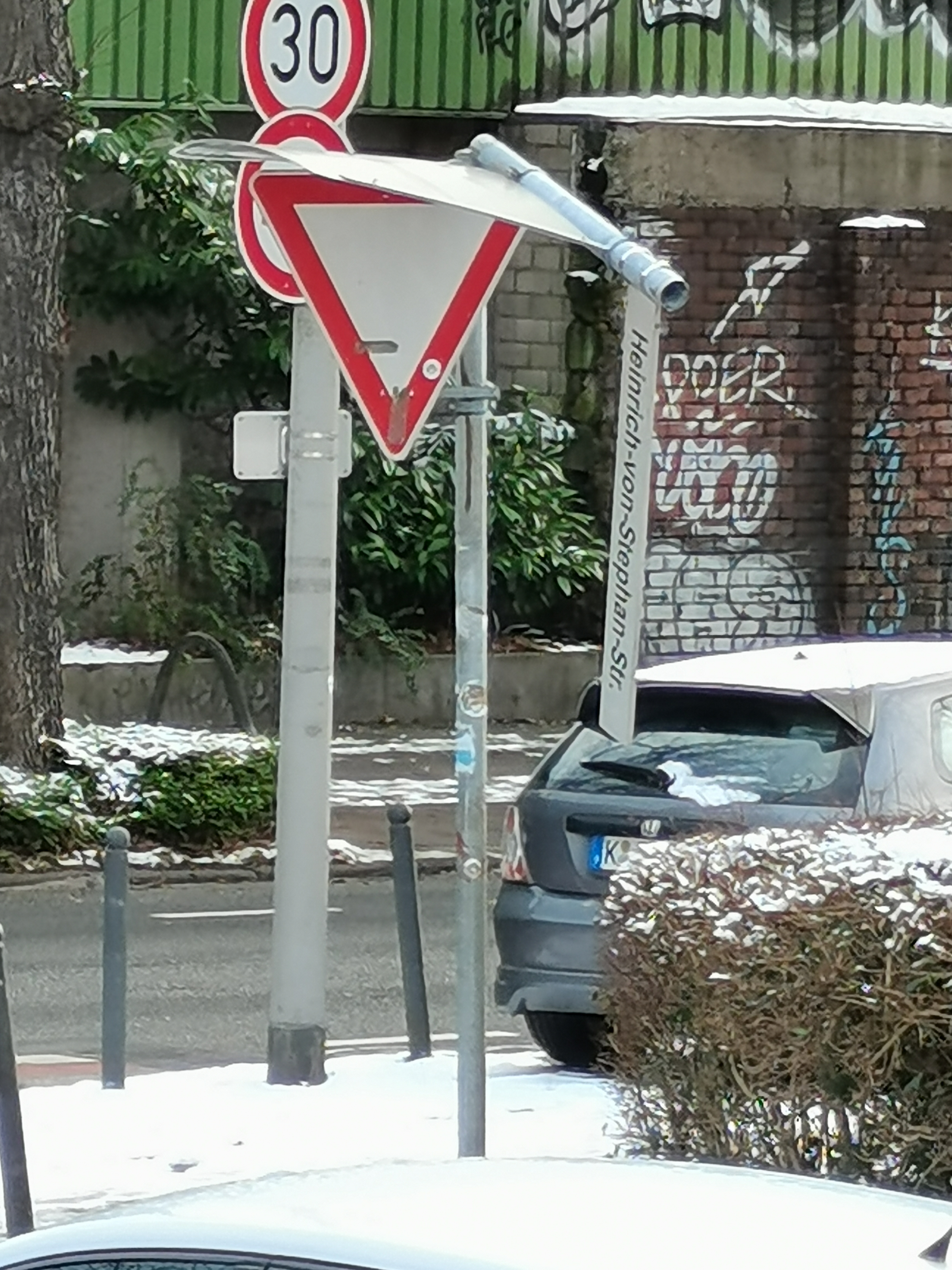 Das Straßenschild ist abgeknickt.