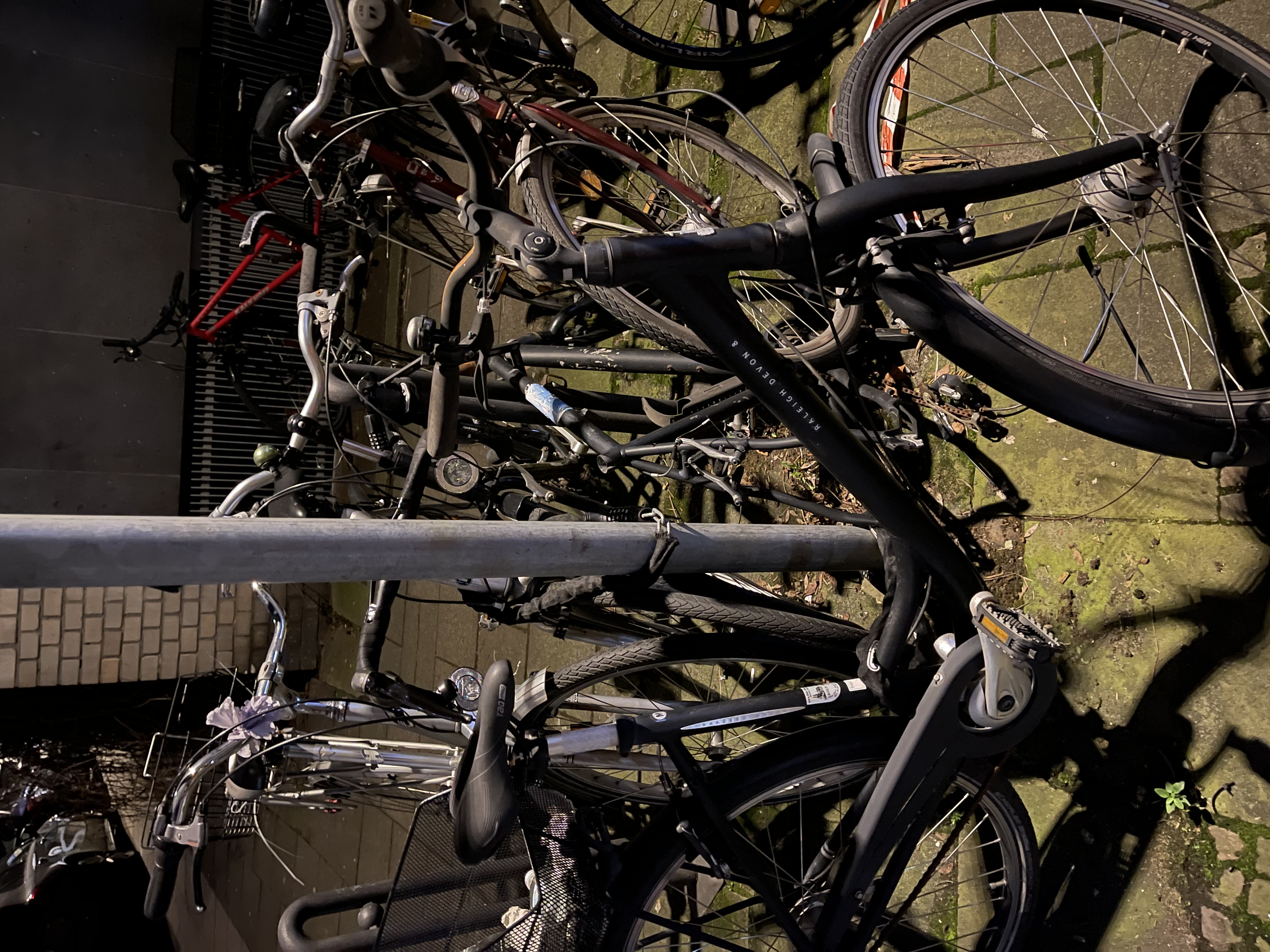 Ein seit langer Zeit blau markiertes Rad. Bitte abholen lassen.