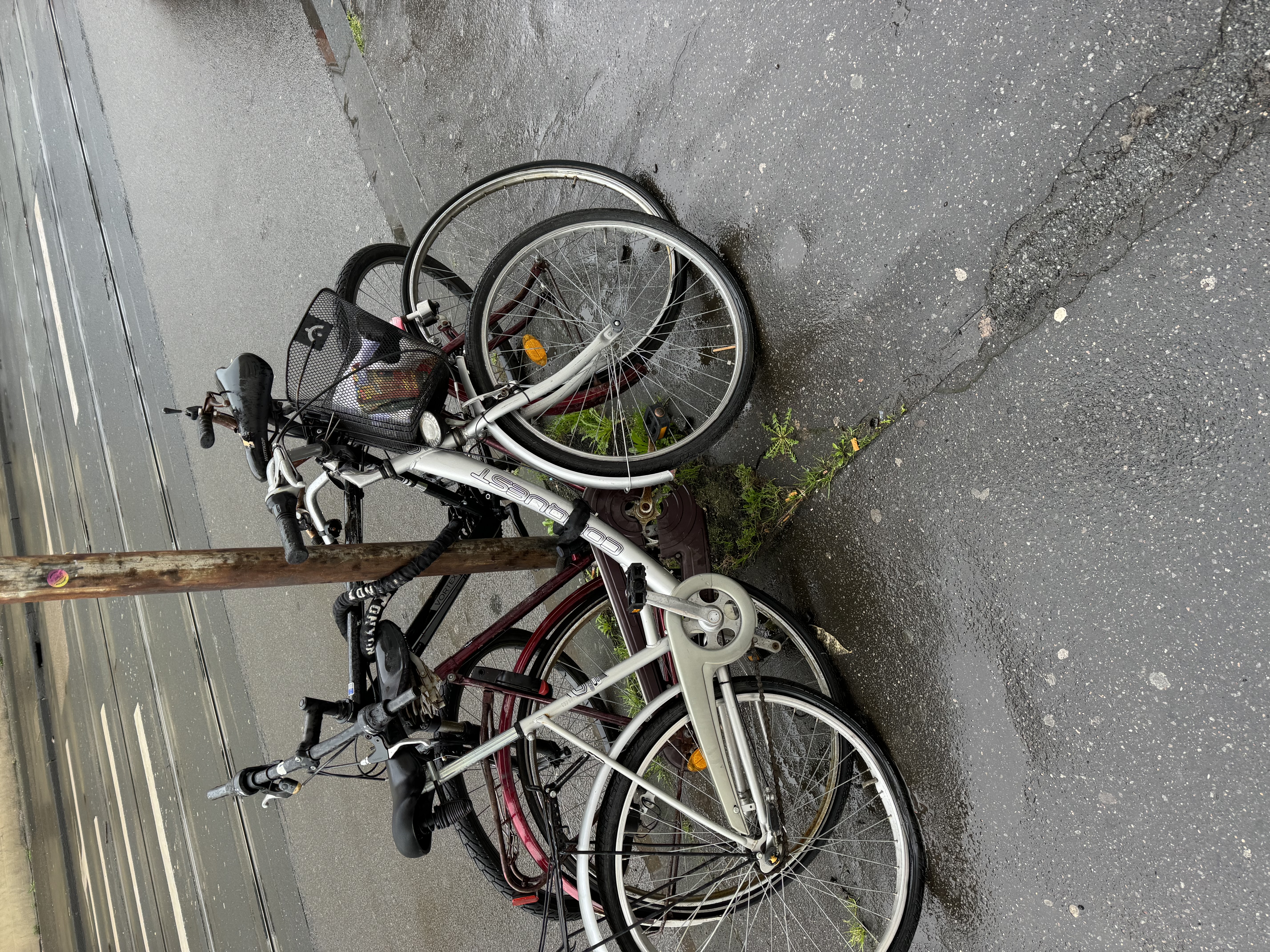 diese Fahrräder sind alle Schrott und vegetieren Ewigkeiten vor sich herum. Der Korb des einen wird als Mülleimer genutzt