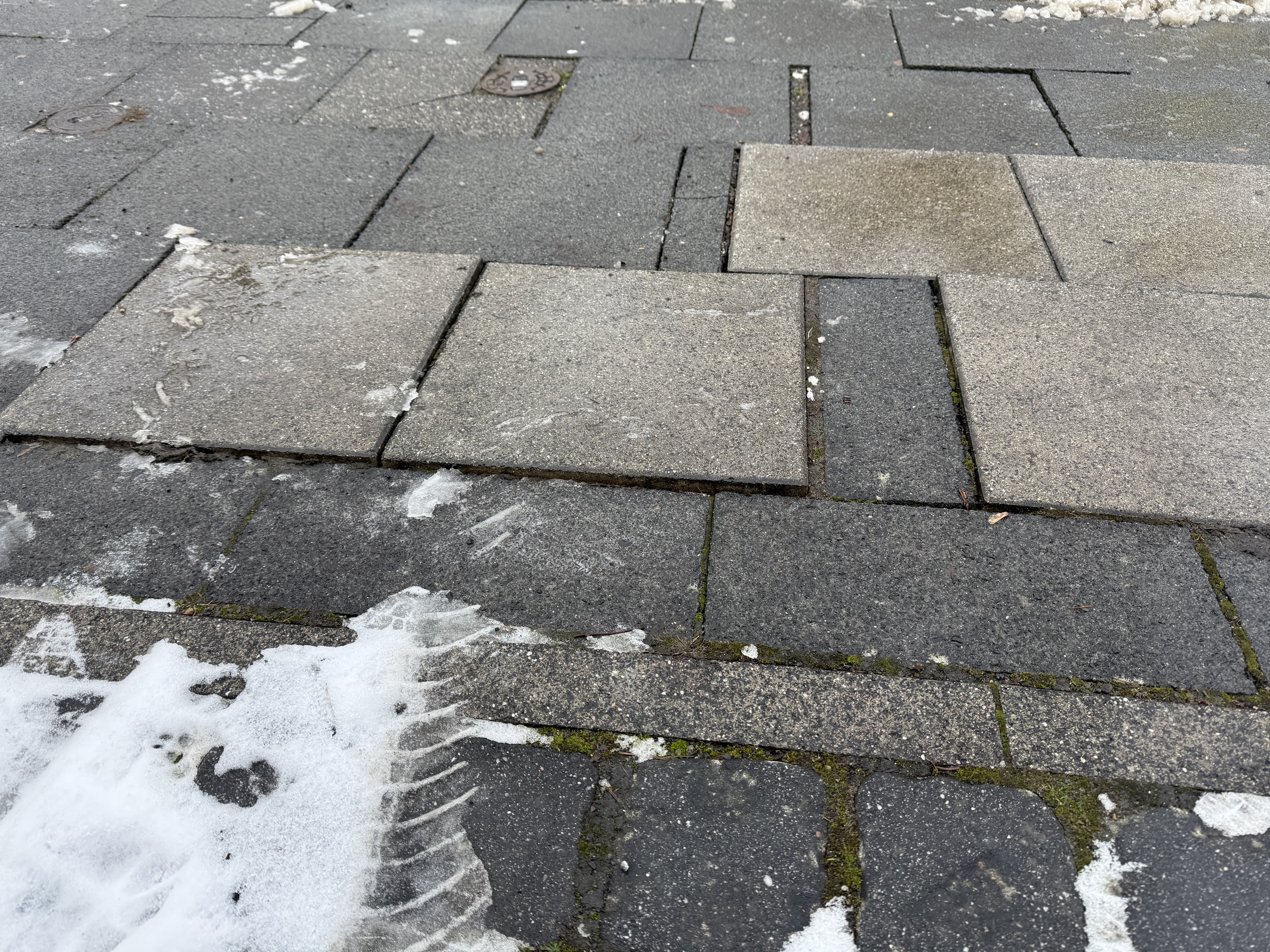 Gehwegplatten sind komplett lose. Vermutlich durch die schweren Wagen der Paketdienste. Es wird dort grundsätzlich geparkt und auch drüber gefahren.