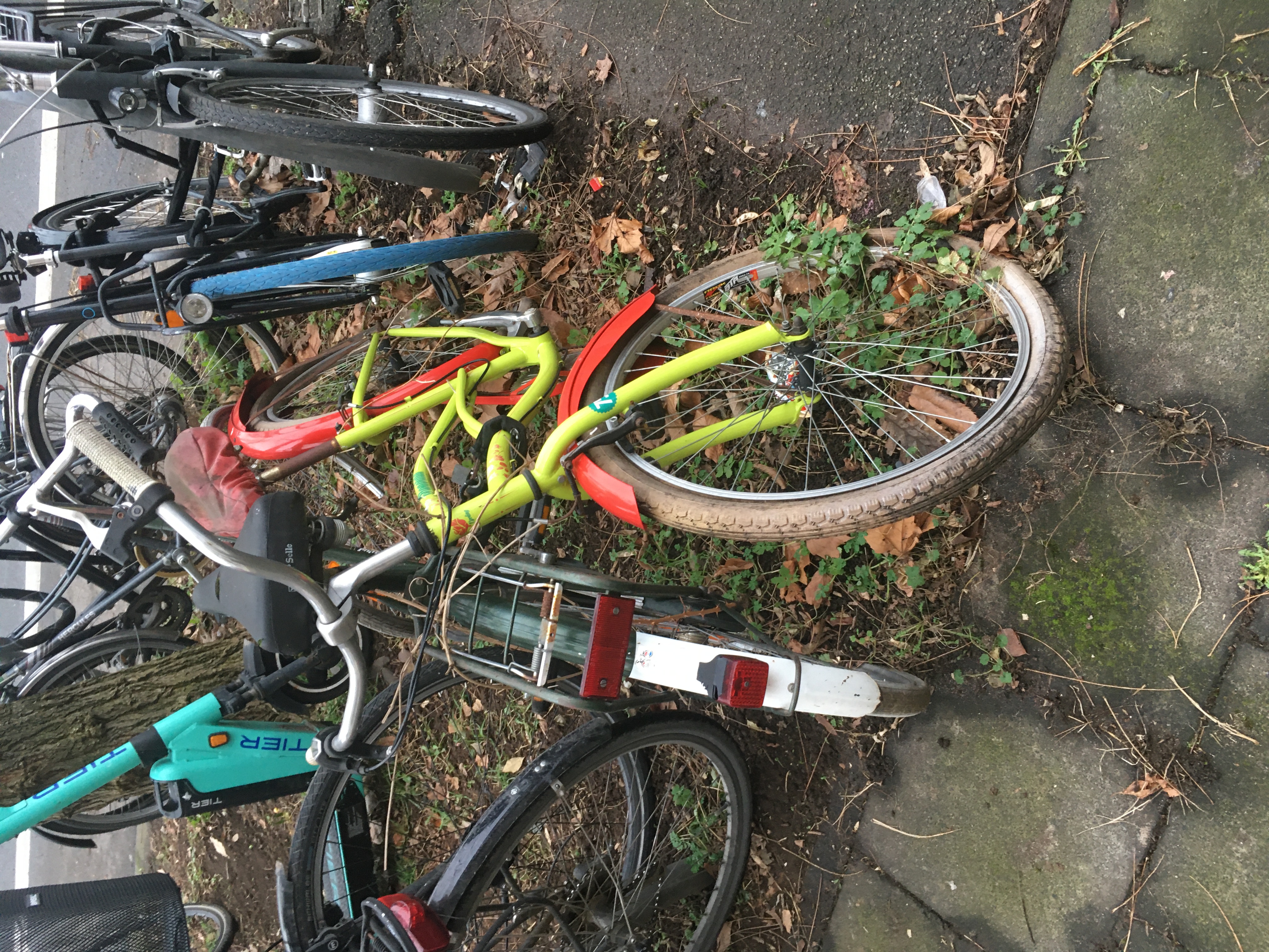 Die beiden Schrottfahrräder stehen seit Jahr und Tag rum, bitte entfernen!