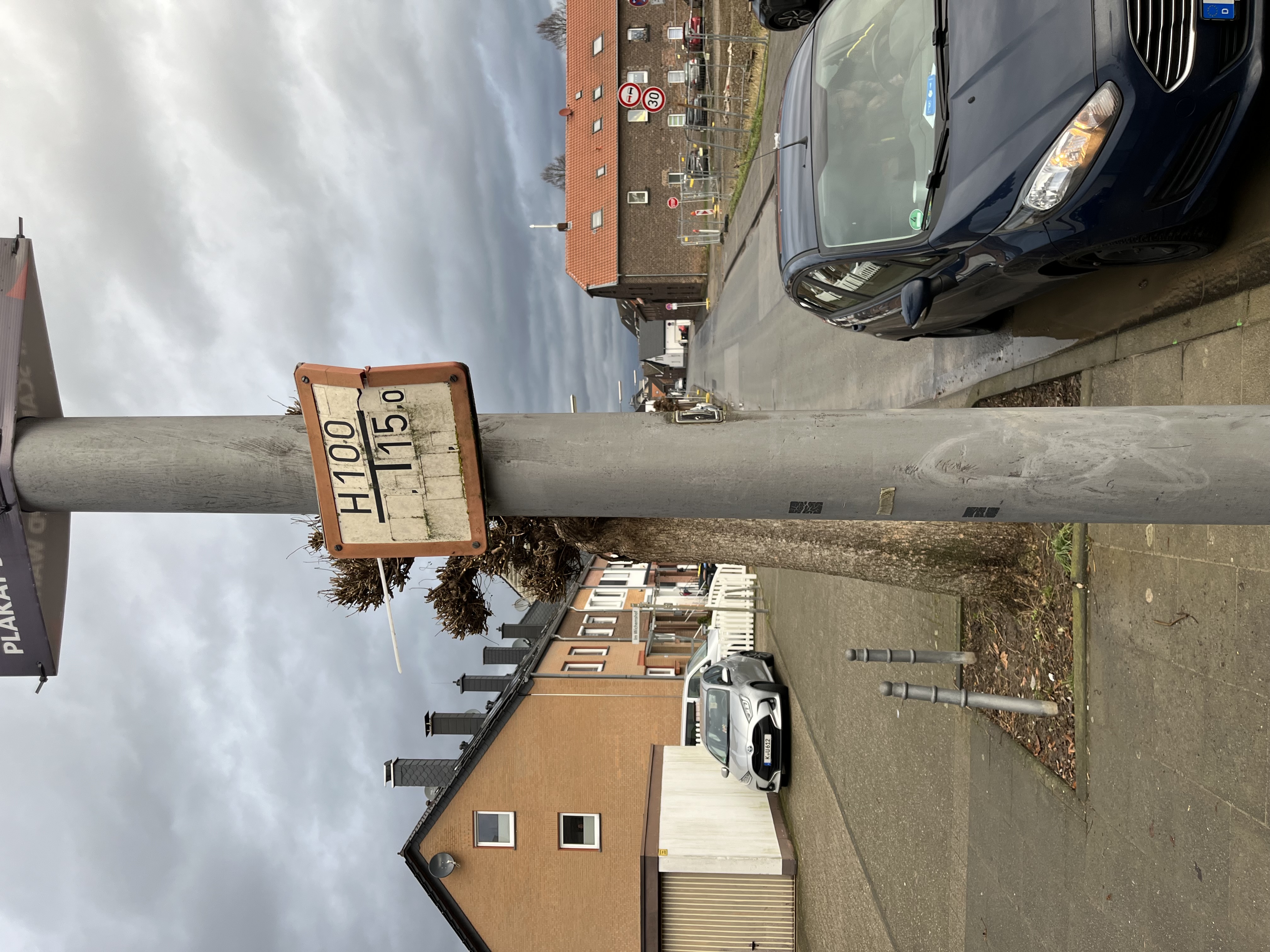 Das Hydrantenschild wurde beschädigt, hängt falsch und ist defekt. Bitte reparieren!