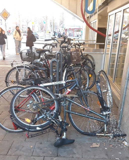 Seit längerer Zeit stehen Mehrerer Schrotträder am Zugang zur Stadtbahn.