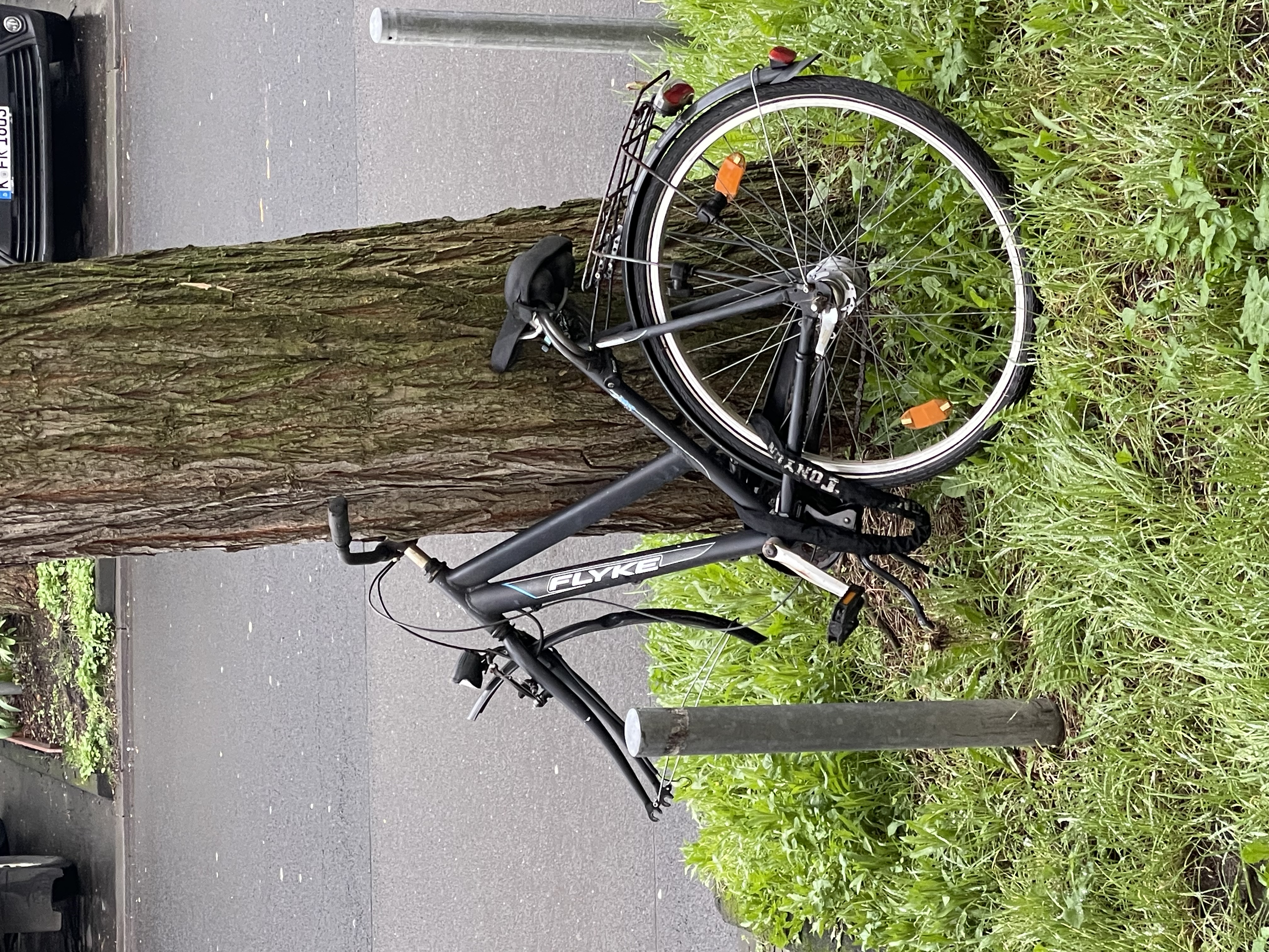 Schrottfahrrad liegt/steht seit über 8 Monaten dort. Mittlerweile wurde das Vorderrad abmontiert. Immer wieder kommt weiterer Müll dazu.