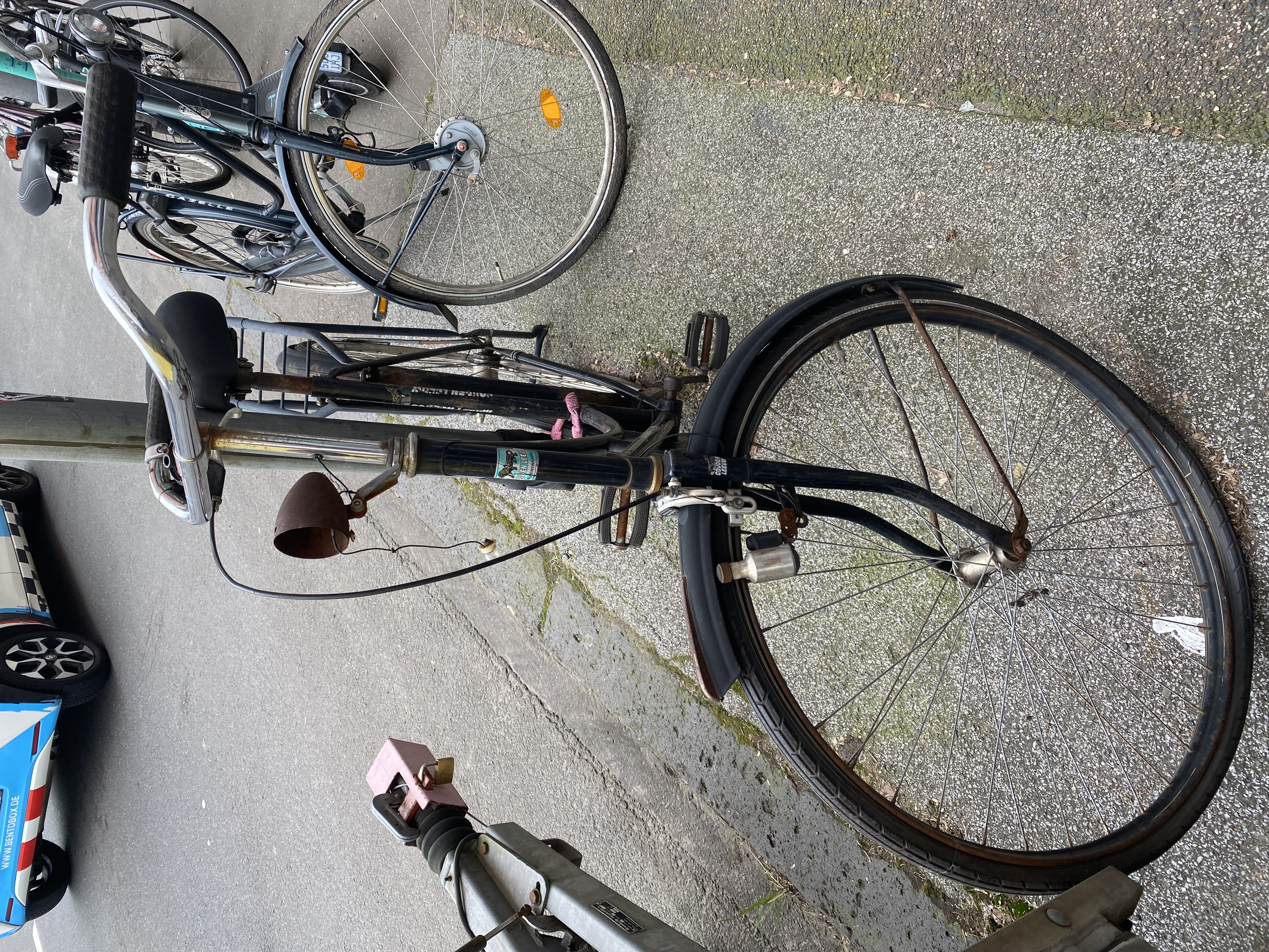 Verrostetes Fahrrad ohne Beleuchtung, kaputter Vorderreifen etc.