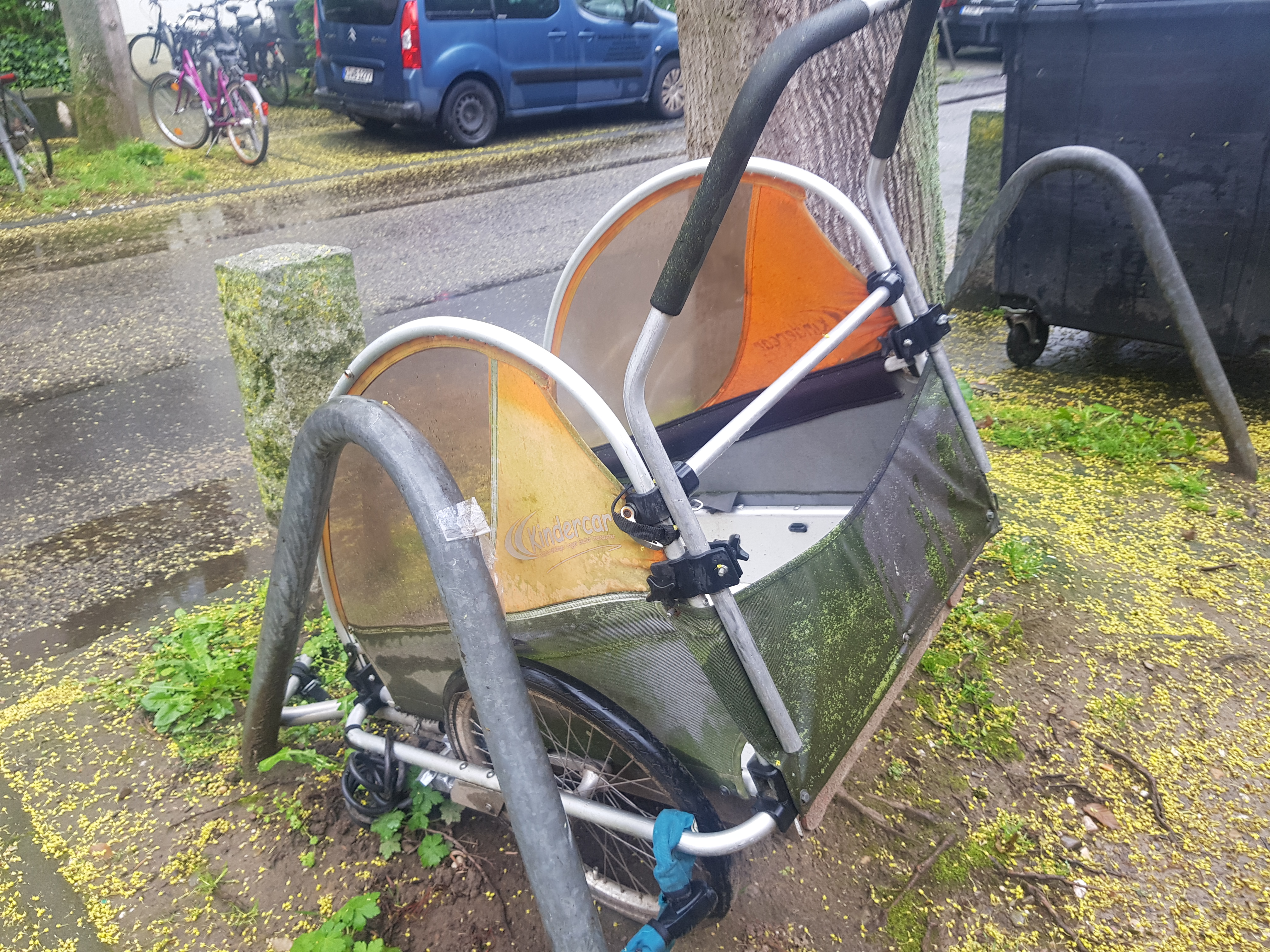 Gegenüber der angegebenen Adresse auf der Ottostraße, an der großen Mauer des Gemeindezentrum (am Baum) steht seit Jahren (!) der alte Fahrradanhänger. Ich habe Ihn schon mehrfach gemeldet, mittlerweile ist er ganz vermoost. Der Schrottanhänger nimmt total viel Platz weg, stört den Baum und sieht hässlich aus. Warum kann der nicht entfernt werden?