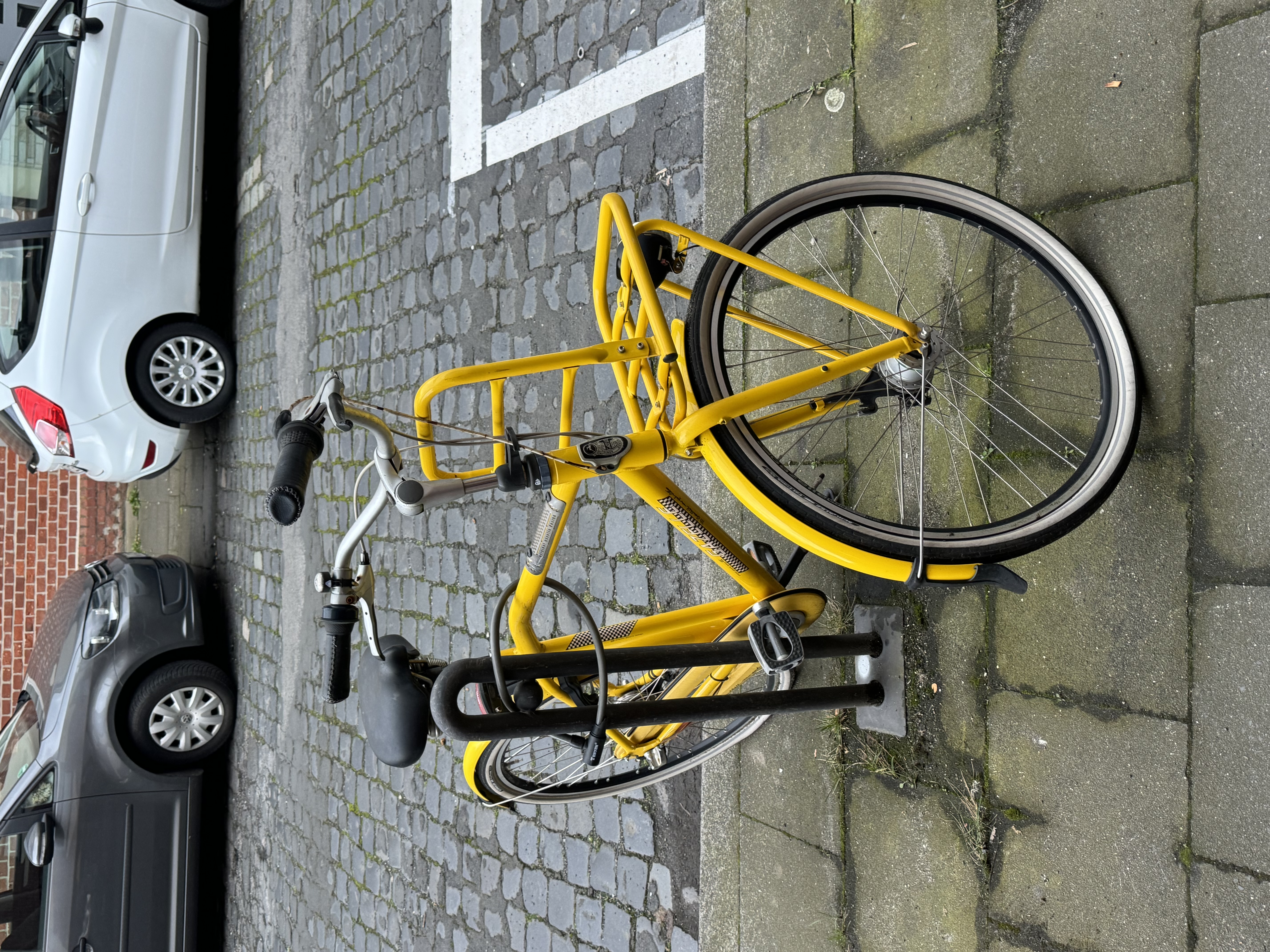 Das Fahrrad steht seit über zwei Jahren platt vor unserer Haustüre. Der Besitzer wohnt schon lange nicht mehr in der Straße, das Fahrrad wurde schon mehrfach gemeldet, leider bisher nicht abgeholt.