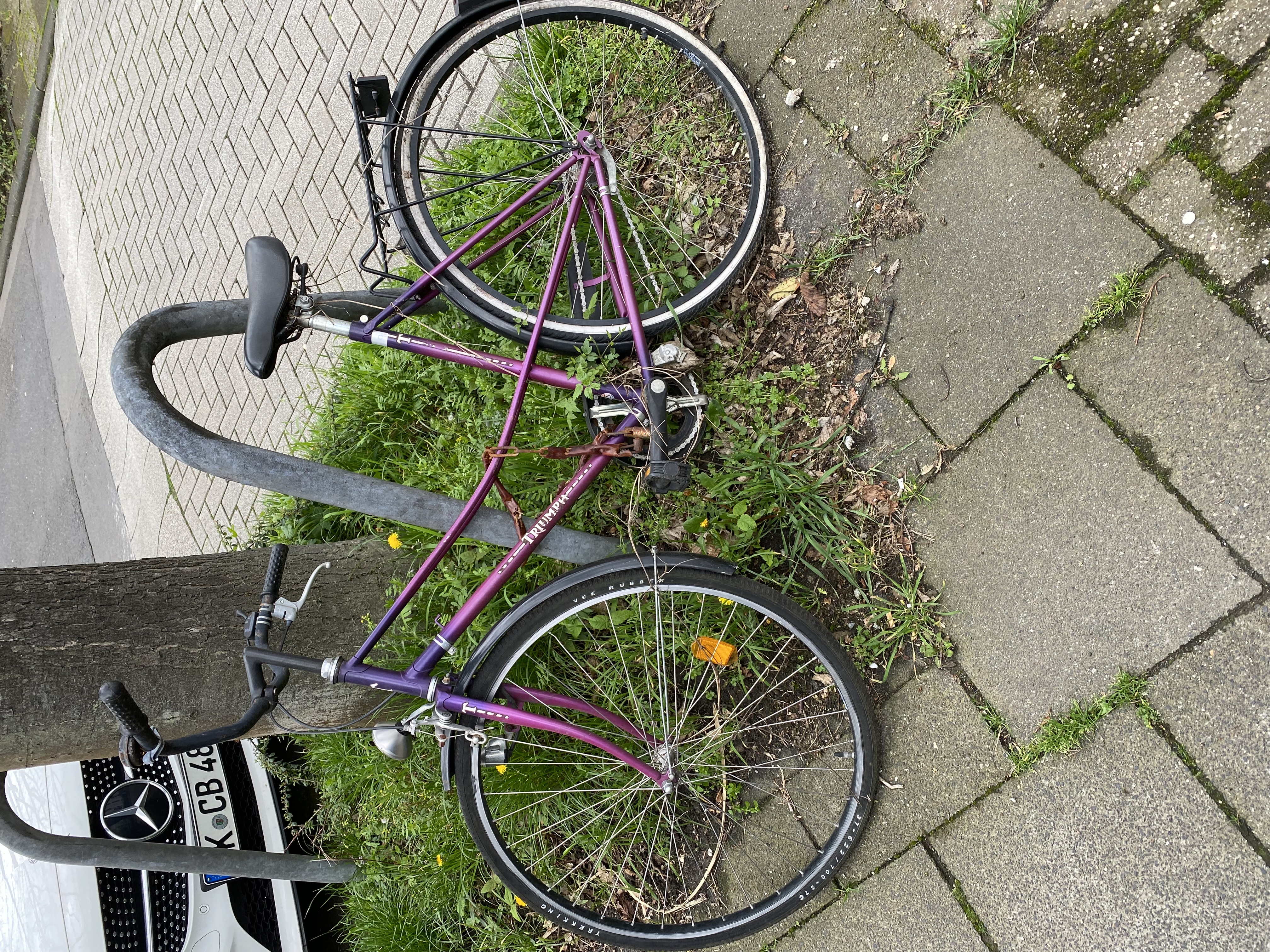 Hier steht ein Schrottfahrrad seit über einem Jahr