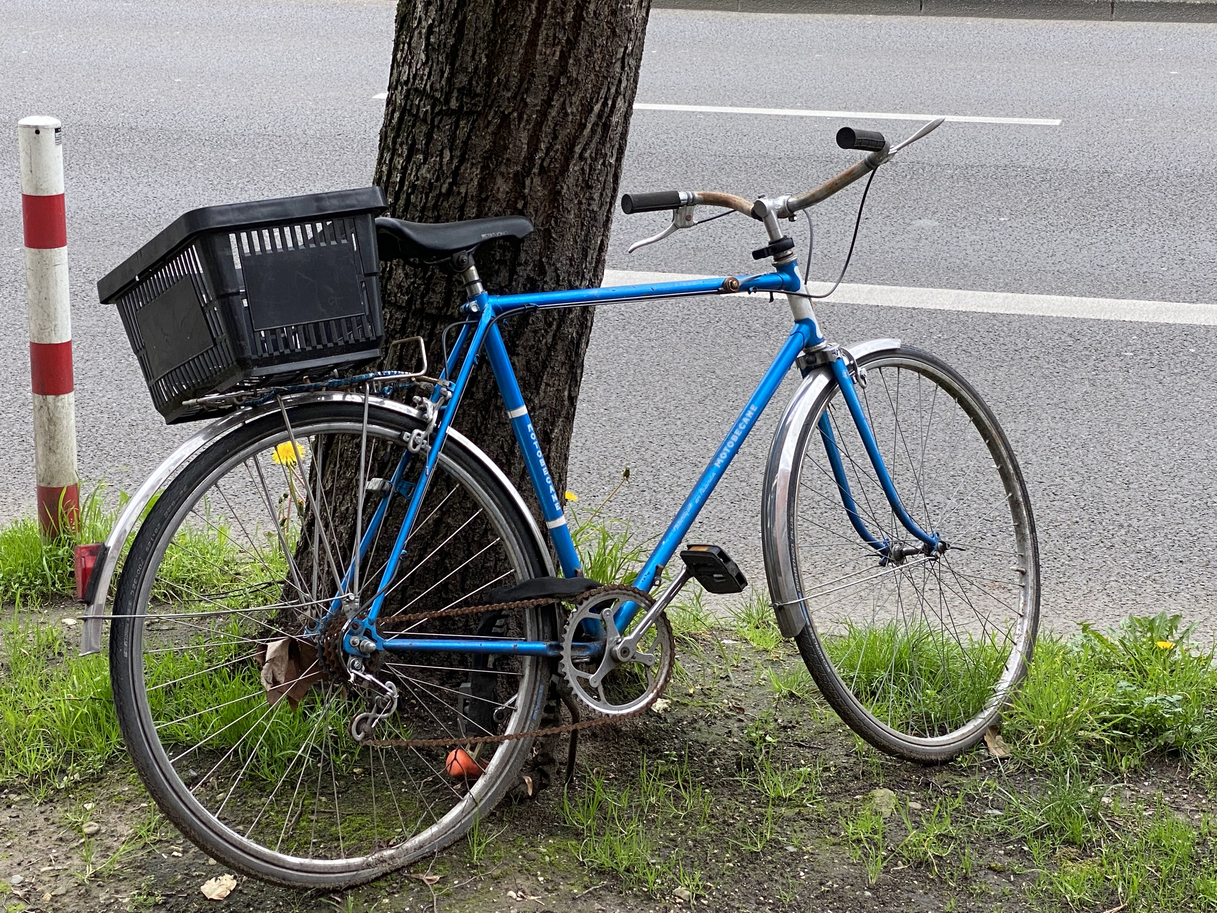 Schrottrad auf Baumscheibe