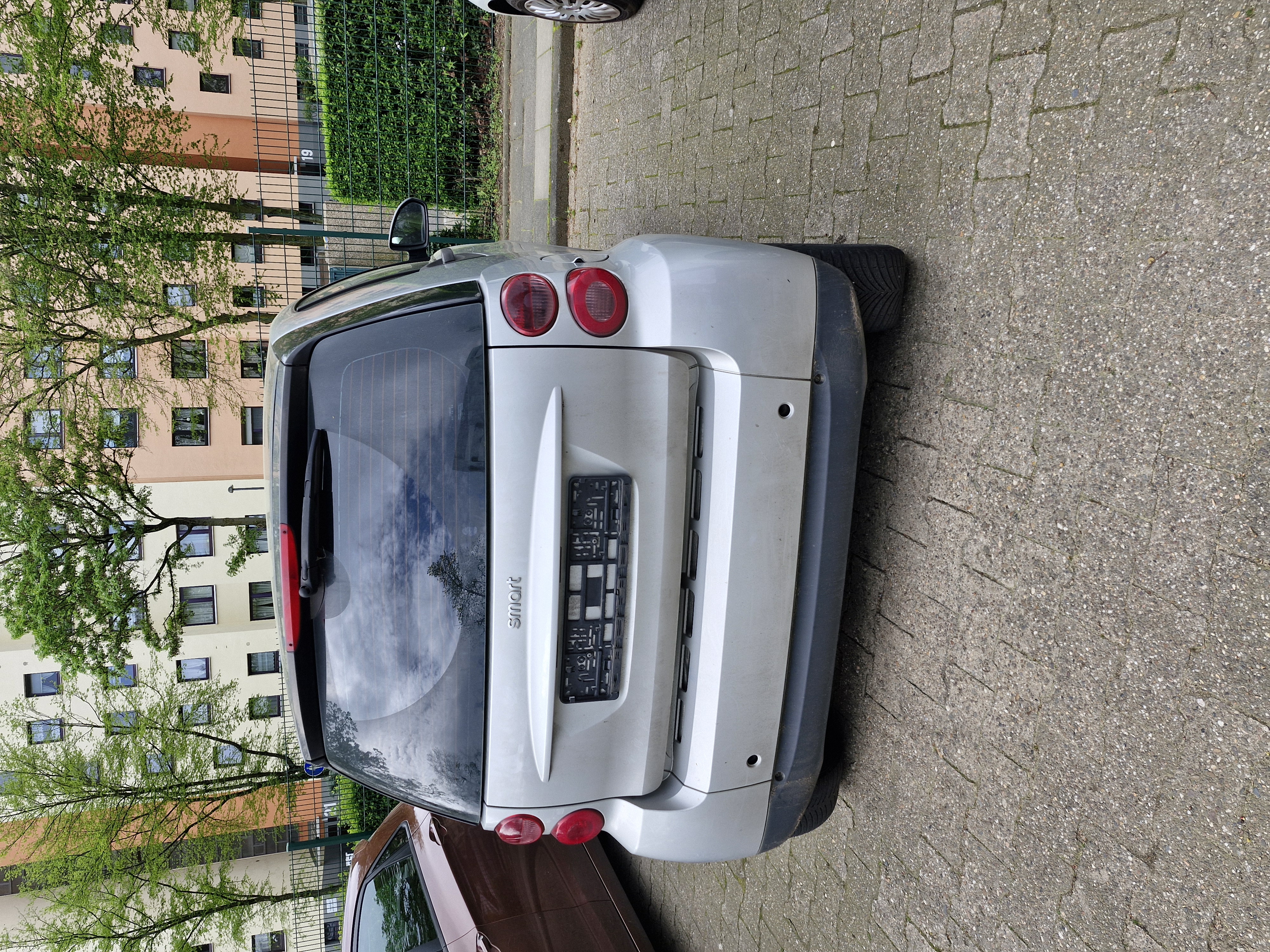 Smart steht auf öffentlichem Parkplatz - ohne Nummernschild und mit Reifen im Auto.