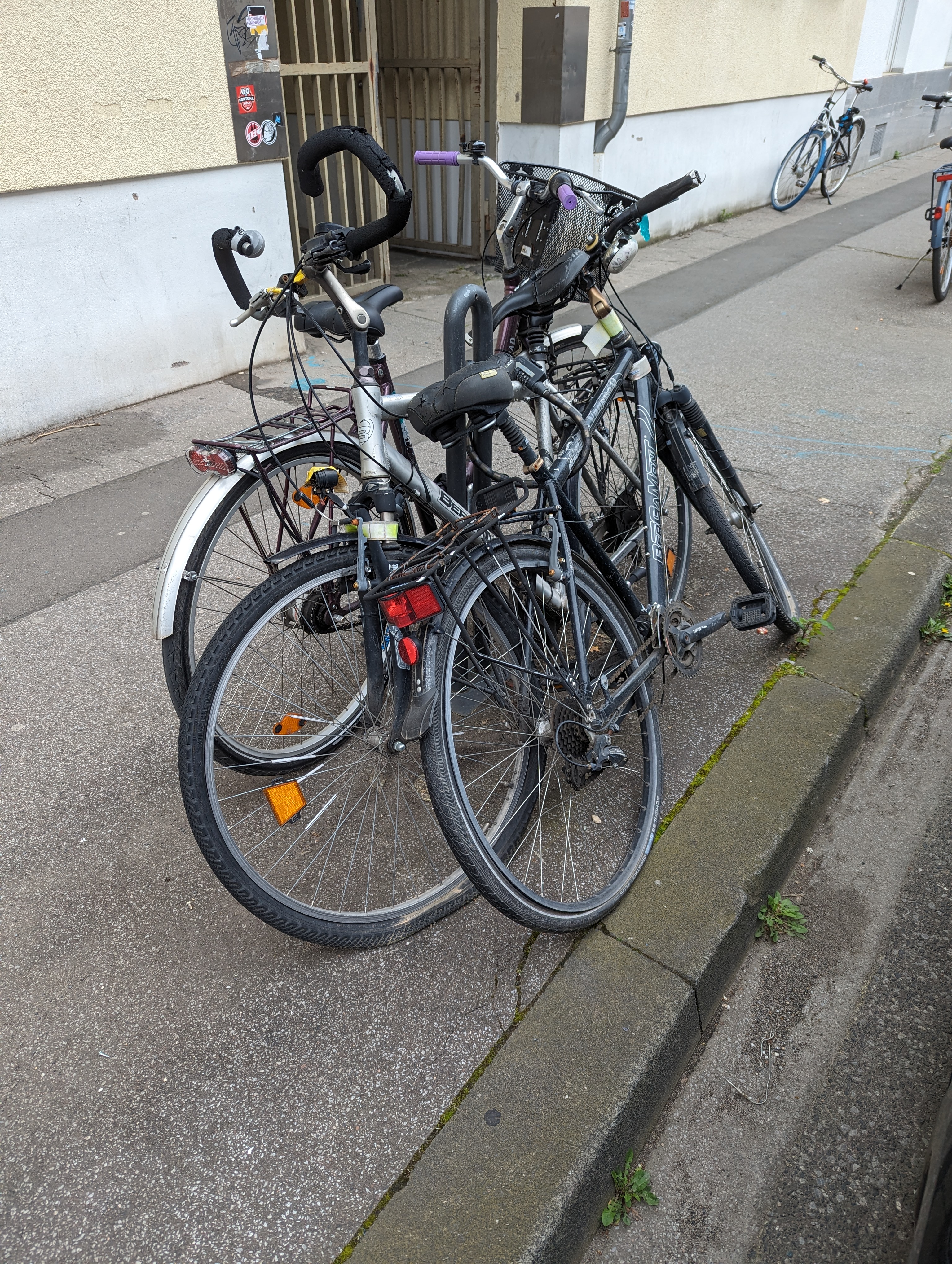 Vier Schrotträder blockieren seit über einem Jahr öffentliche Fahrradstellplätze.