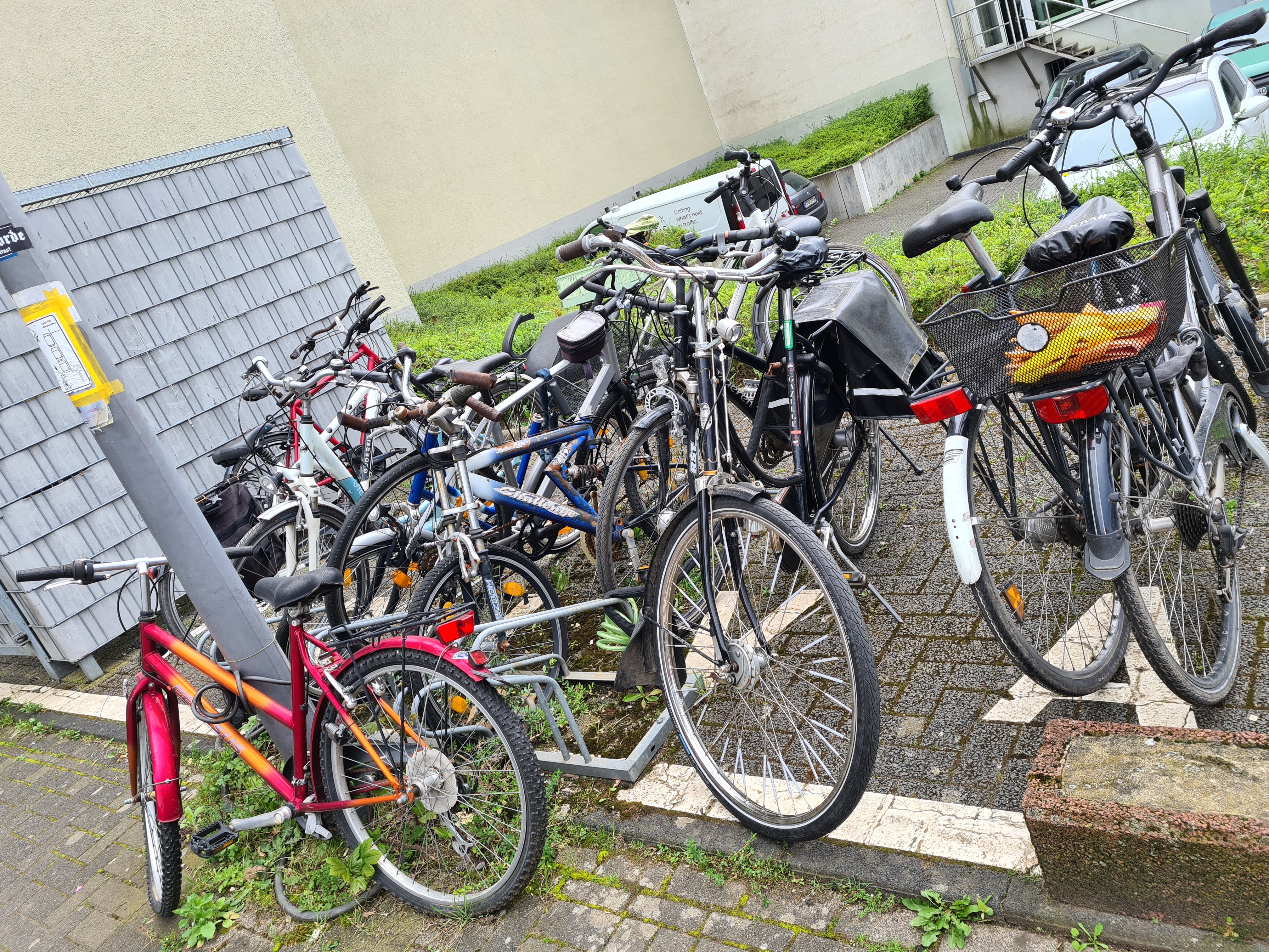Hinter dem Haus stehen 3 Schrotträder und blockieren den Fahrradständer. Ich bin mir nicht sicher ob es als öffentlicher Abstellort gilt, aber es wäre trotzdem schön wieder Platz zum Rad anketten zu haben. Vielen Dank.