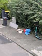 Ecke Vorgebirgstr.220/ Roisdorfer Str. 2 erneute Ablage von Sperrmüll (seit letzter Woche) wie Küchenstuhl, Elektronik: Trockner.