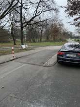 Eine Durchfahrtsperre wurde nicht richtig verschlossen, somit kann man ungehindert durchfahren und dort kommen viele Kinder mit Fahrrad